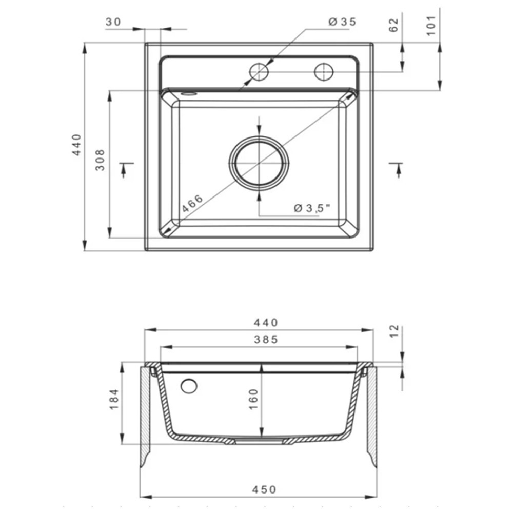 Chiuveta pătrată din granit negru Nia satisface atât nevoile estetice, cât și pe cele funcționale. Metoda sa de instalare încastrată conferă bucătăriei tale un aspect modern, în timp ce dimensiunile compacte și materialele de calitate premium asigură o durată lungă de viață.