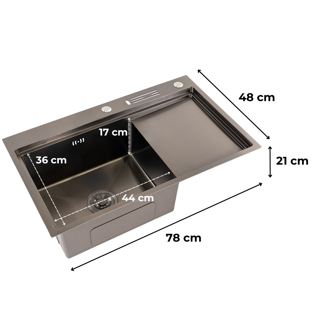 Chiuveta Dahlia din oțel inoxidabil combină funcționalitatea și un aspect modern. Oțelul inoxidabil 304 durabil garantează longevitate și rezistență, în timp ce grosimea de 30,8 mm oferă stabilitate suplimentară. Suprafața sa tratată cu nanotehnologie respinge petele de ulei și murdăria, fiind ușor de întreținut. Suprafața lustruită rezistă zgârieturilor zilnice , astfel încât chiuveta își va păstra aspectul estetic timp de mulți ani.