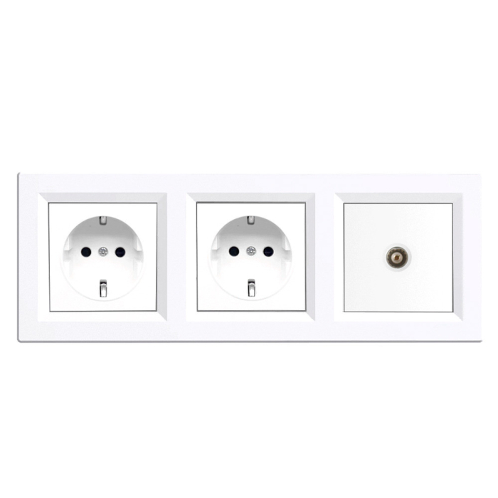 Priza dublă cu împământare Nova III cu priză TV este o soluție practică, cu economie de spațiu, care oferă un singur ansamblu pentru alimentarea în siguranță a două aparate electrice și o conexiune stabilă de semnal pentru un televizor sau o unitate interioară. Prizele cu împământare funcționează la un curent nominal de 16 A și 250 V CA și sunt potrivite pentru aparatele de uz casnic și de birou, precum și pentru consumatorii de putere mai mare, cum ar fi aparatele de bucătărie și echipamentele informatice. Priza TV RF coaxială asigură o transmisie de semnal fiabilă, fără interferențe, pentru o calitate excelentă a imaginii și a sunetului.
