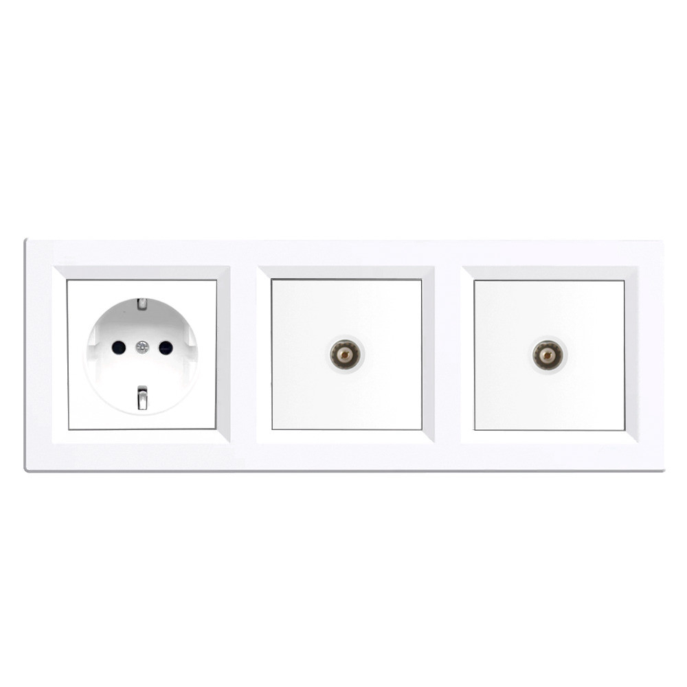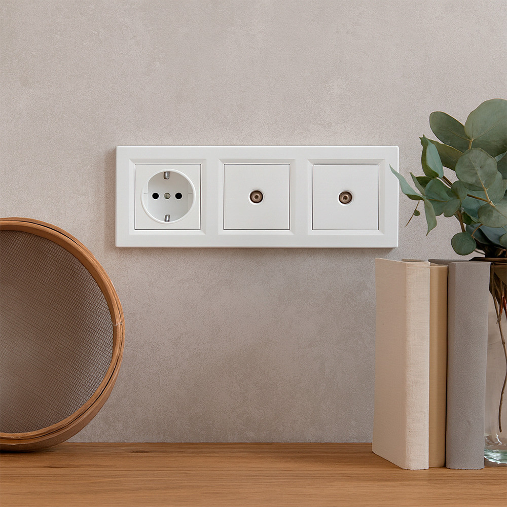 Priză cu împământare Nova III cu două prize TV cu cadru alb
