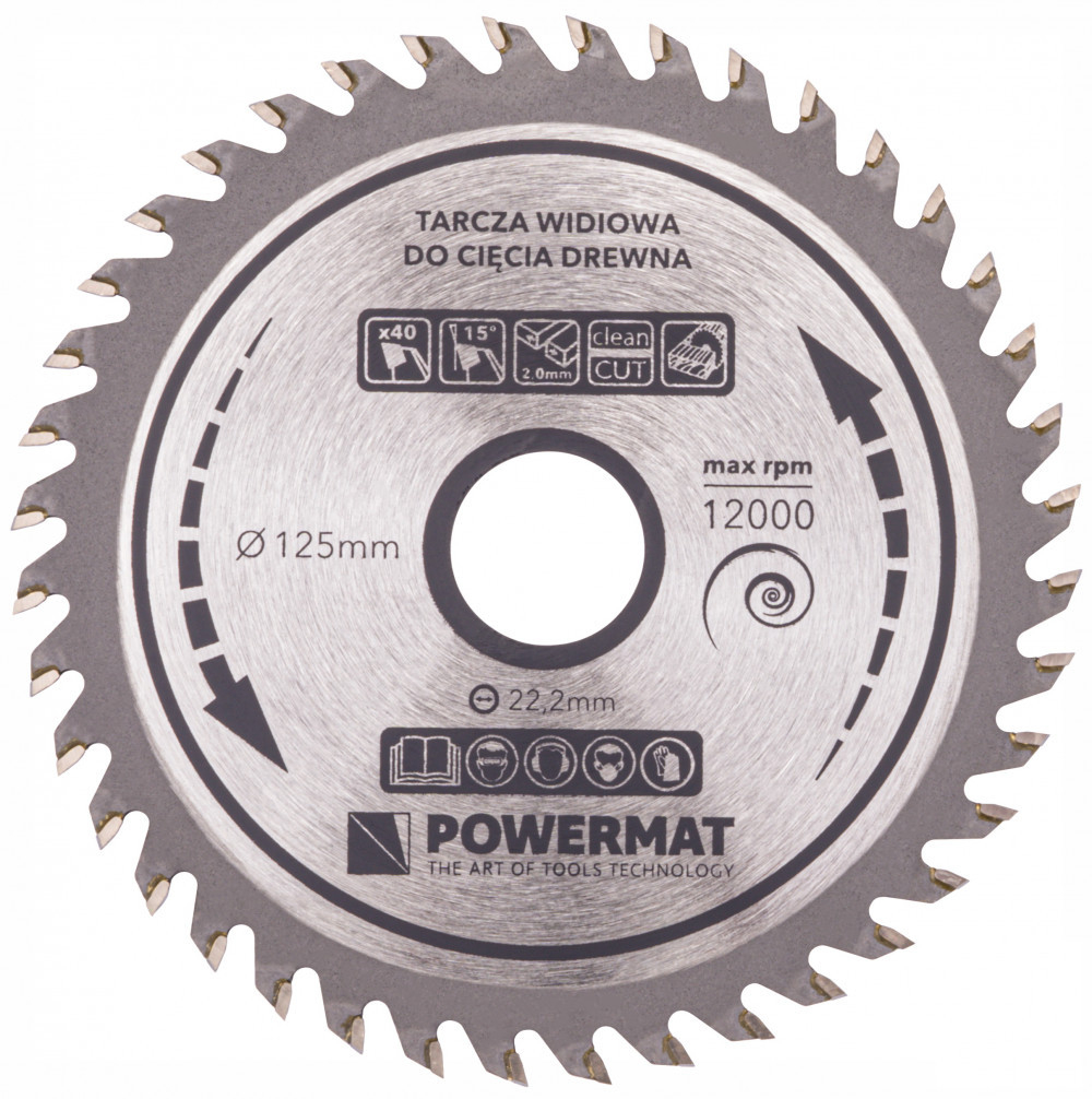 Standard pentru ferăstraie circulare de masă și mitre. Dimensiunea exterioară a lamei este de 125mm. Orificiul de fixare este de 22,2 mm.
