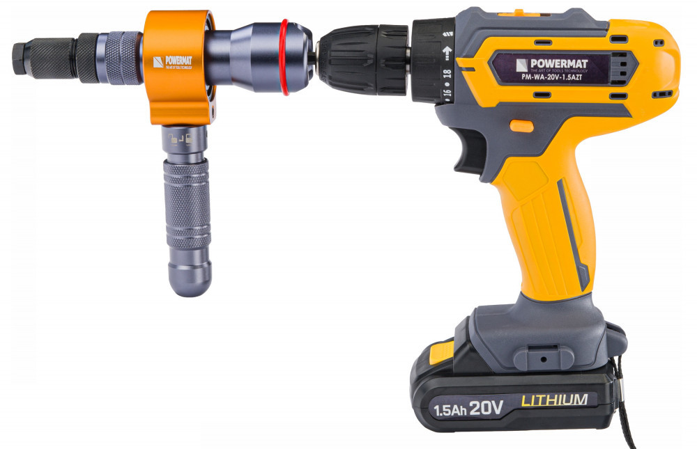 Șurubelnița PM-WA-20V-1.5AZT prezentată în fotografie nu este inclusă în această ofertă și este doar pentru demonstrația produsului instalat, gata de utilizare. Șurubelnița poate fi achiziționată separat