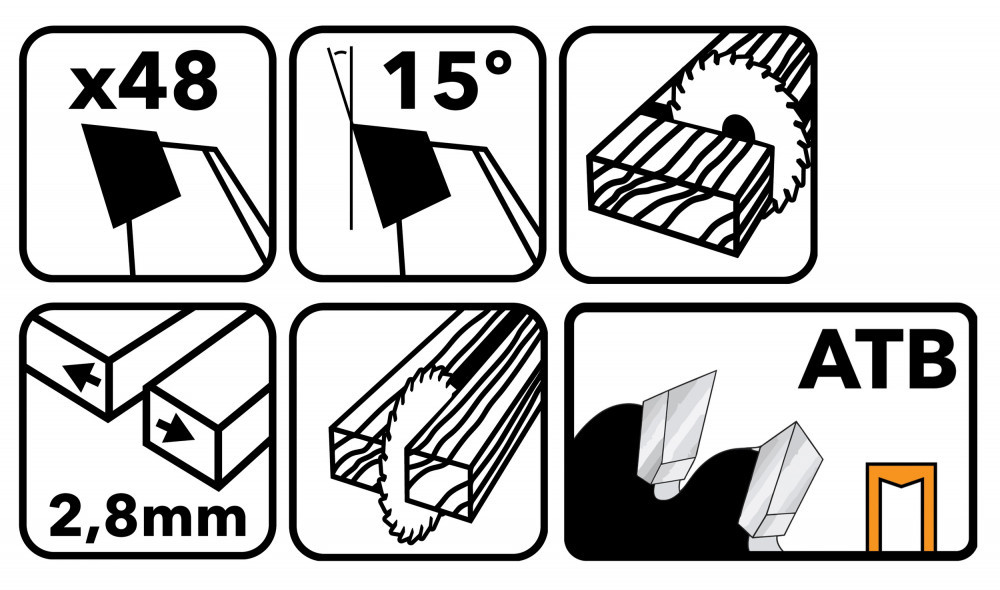 • Material dinți: TCT (TUNGSTEN CARBIDE TIPPED)