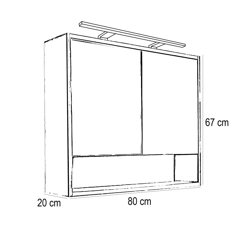 Mobilierul de baie are un spațiu de depozitare spațios unde se pot depozita convenabil articolele de toaletă. Dulapul are 2 rafturi. Datorită designului său compact , este potrivit și pentru băi mai mici. Produsul este fabricat din placă de mobilier de înaltă calitate, de 18 mm, și este prevăzut cu margini asortate în culori . Mobilierul de baie este disponibil atât în versiuni suspendate, cât și independente . Este important de menționat că lampa nu este inclusă în set.