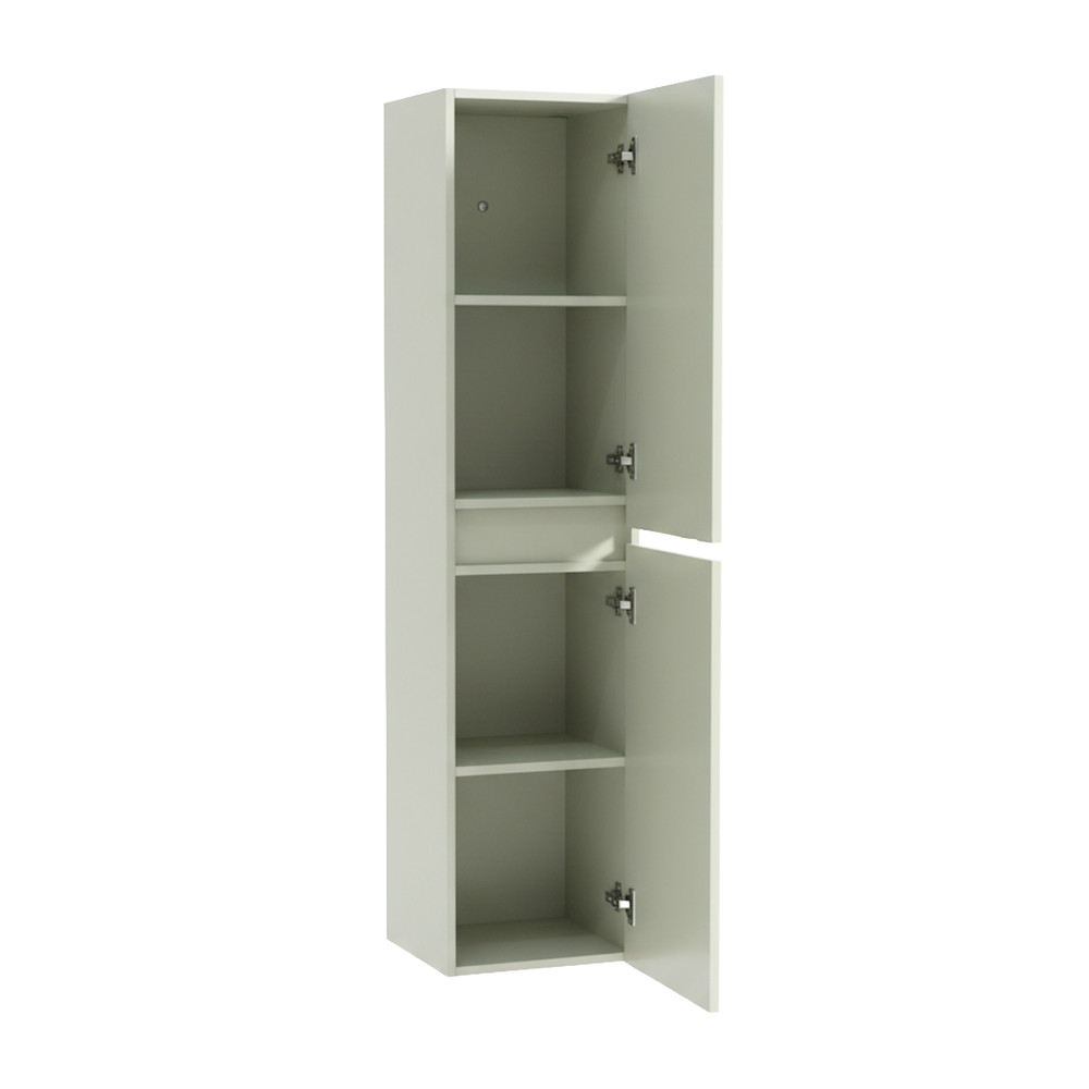 Dulapul lateral suspendat Leziter Trent poate fi unul dintre cele mai practice elemente pentru băile mici și medii, deoarece nu ocupă spațiu prețios datorită montării sale pe perete, dar oferă totuși o capacitate de depozitare semnificativă. Corpul din laminat rezistent la umiditate și partea frontală lăcuită sunt bine rezistente la mediile umede, astfel încât își va păstra aspectul estetic în timp.
