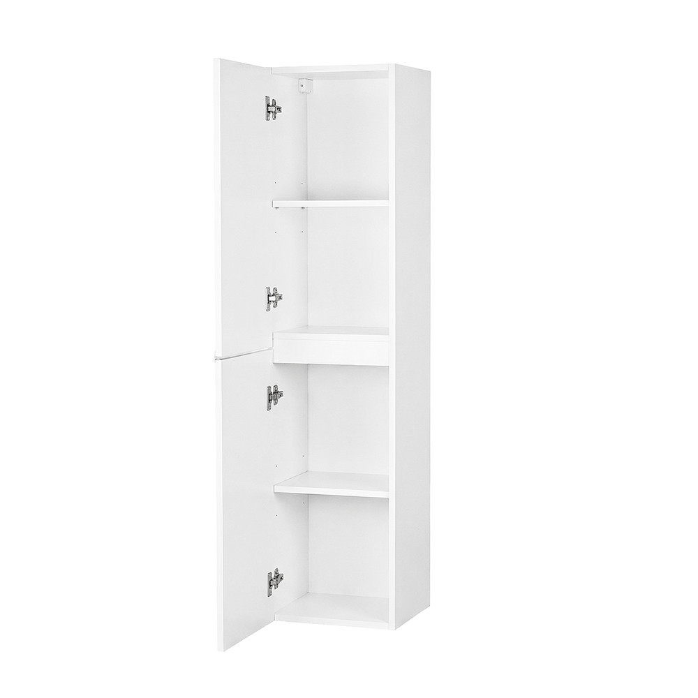Dulapul lateral suspendat Vario Trim 35cu design suspendat oferă băii un aspect modern și curat, facilitând în același timp curățenia zilnică: podeaua este lăsată liberă dedesubt, făcând ca spațiul să pară mai spațios și mai ordonat. Ușa poate fi montată atât în stânga, cât și în dreapta, ceea ce este deosebit de avantajos în băile mici, unde fiecare centimetru contează.Dulapul este fabricat din panouri de mobilier durabile care rezistă la umiditatea zilnică din baie.Suprafețele sunt ușor de curățat. Profilul mânerului metalic Trim accentuează și mai mult caracterul elegant și modern al mobilierului; acesta oferă confort în utilizare și se îmbină armonios cu aspectul sofisticat al suprafețelor alb pe alb.