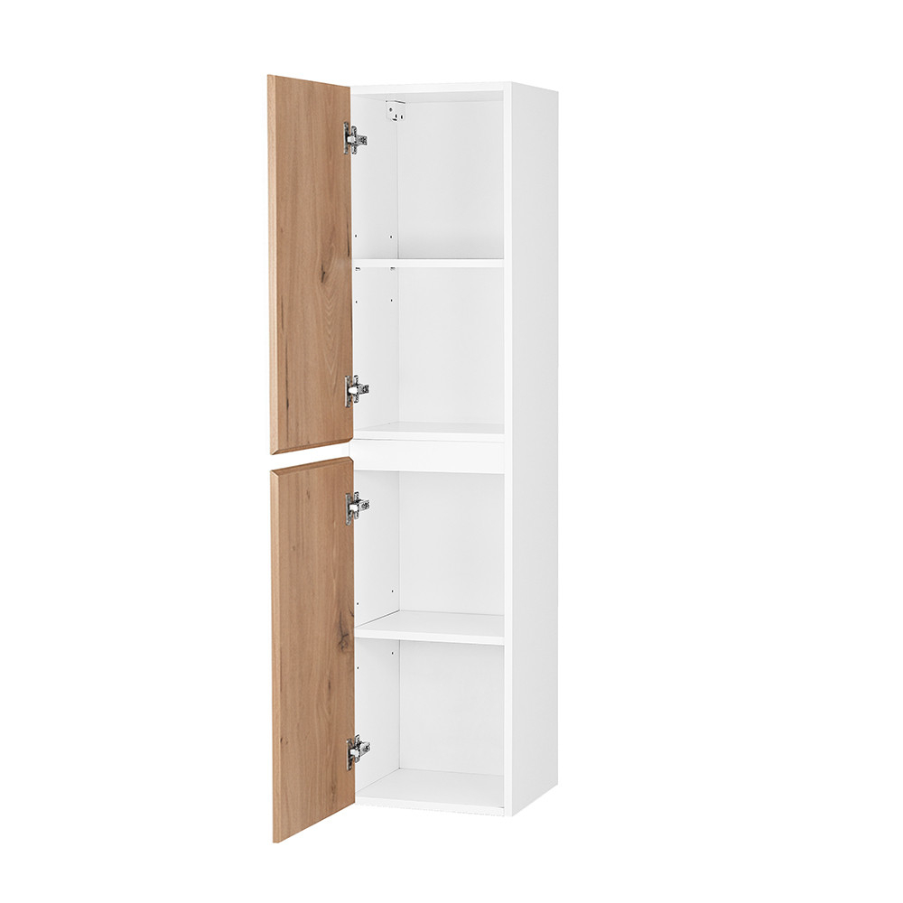 Dulapullateral suspendat Vario Forte 35 este completarea ideală pentru orice baie modernă. O alegere excelentă dacă aveți nevoie de spațiu suplimentar de depozitare într-o dimensiune compactă cu design și calitate în minte.Corpul alb și frontul din stejar îi conferă un aspect atemporal, curat, care se îmbină armonios cu restul familiei Vario Forte.