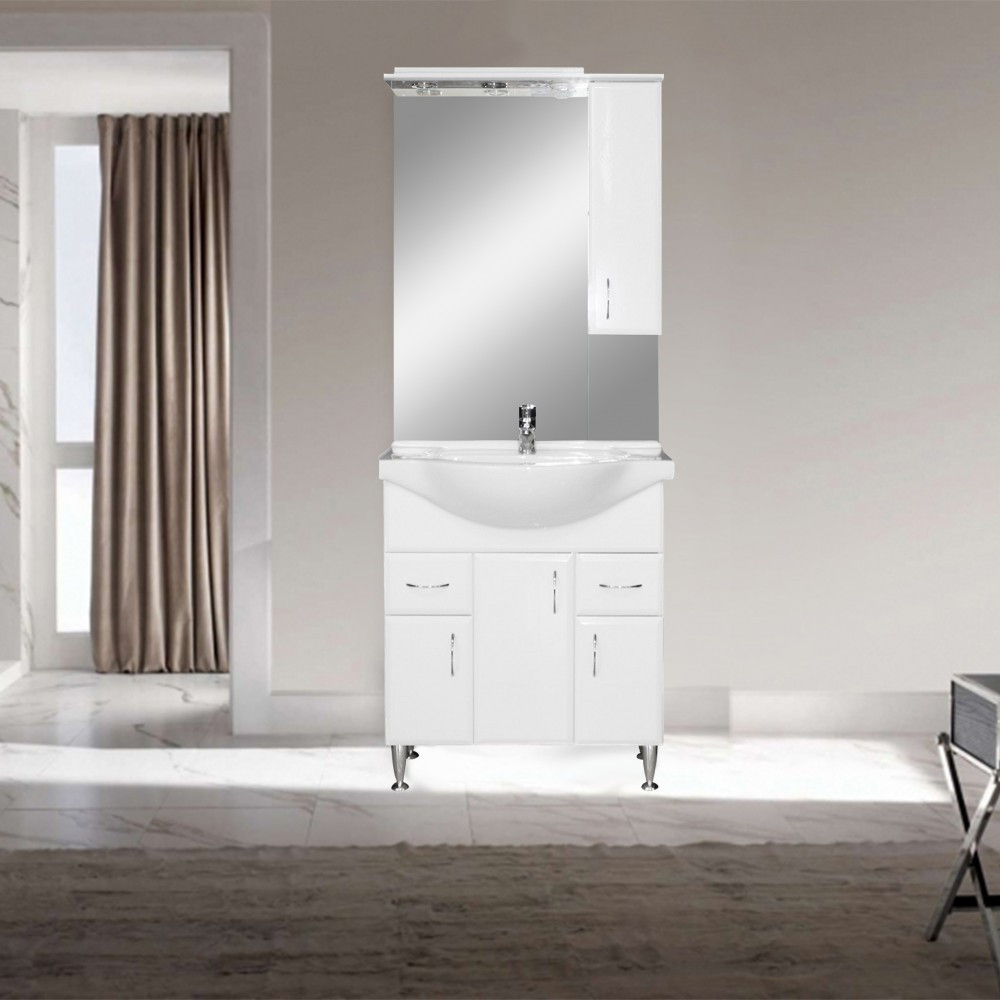 Acestea fac parte din familia de mobilier de baie Bianca Plus , de înaltă calitate, produs pe plan intern. Partea din față a mobilierului este, de asemenea, acoperită cu folie MDF vidată , ceea ce o face perfect impermeabilă .
