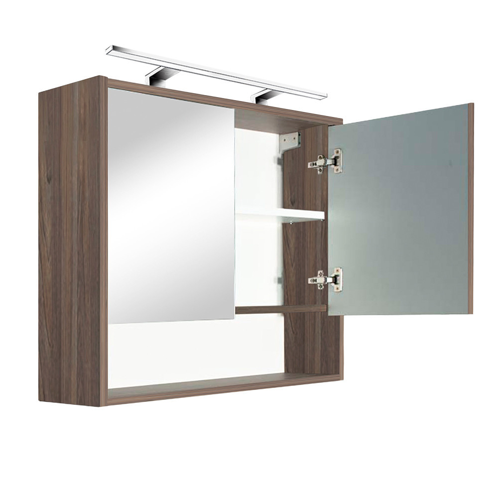 Mobilierul de baie are un spațiu de depozitare spațios unde se pot depozita convenabil articolele de toaletă. Dulapul are 2 rafturi. Datorită designului său compact , este potrivit și pentru băi mai mici. Produsul este fabricat din placă de mobilier de înaltă calitate, de 18 mm, și este prevăzut cu margini asortate în culori . Mobilierul de baie este disponibil atât în versiuni suspendate, cât și independente . Este important de menționat că lampa nu este inclusă în set.
