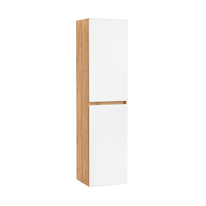Dulapullateral suspendat Vario Forte 35 este completarea ideală pentru orice baie modernă. O alegere excelentă dacă aveți nevoie de spațiu suplimentar de depozitare într-o dimensiune compactă cu design și calitate în minte.Partea frontală din stejar și corpul alb îi conferă un aspect atemporal, curat, care se îmbină armonios cu restul familiei Vario Forte.