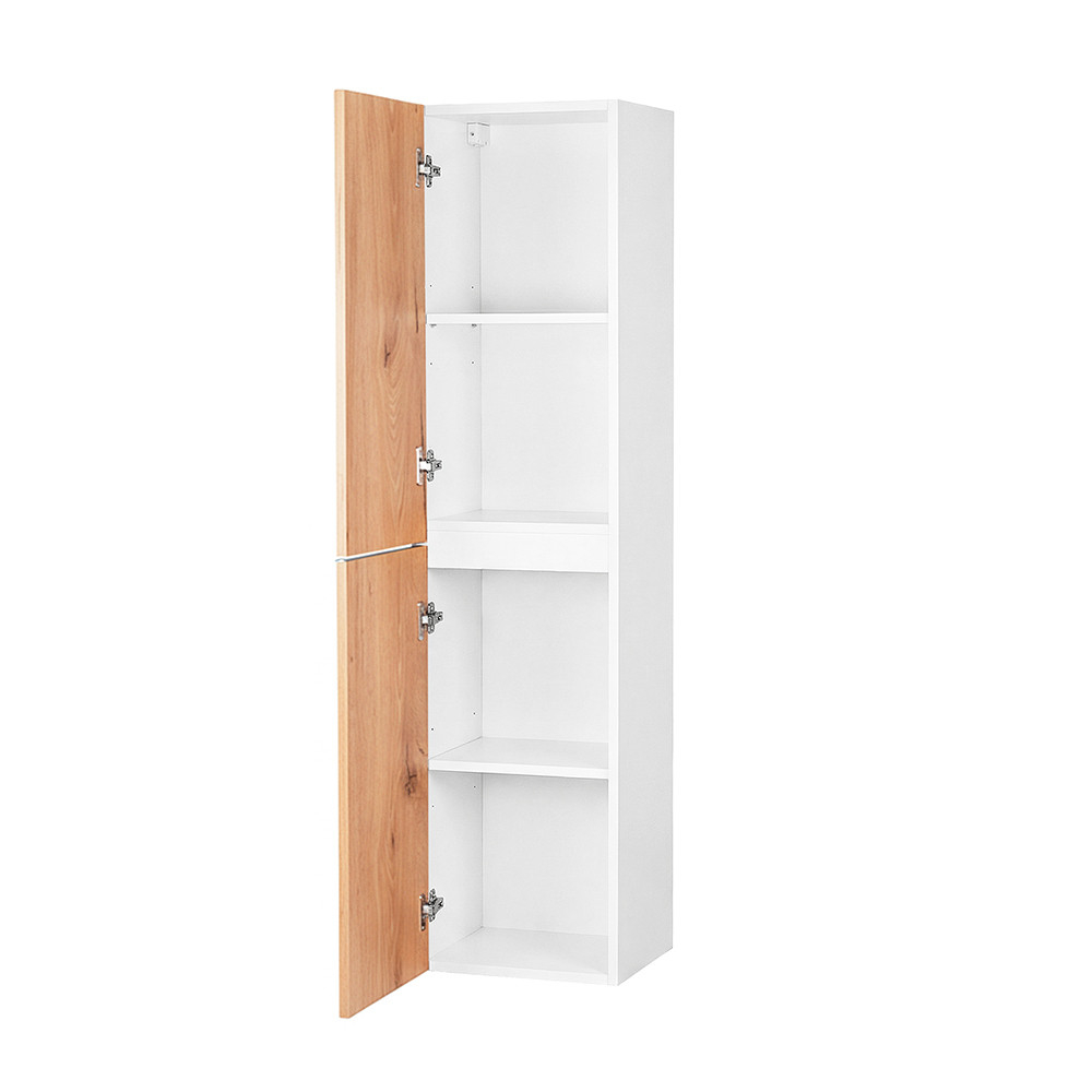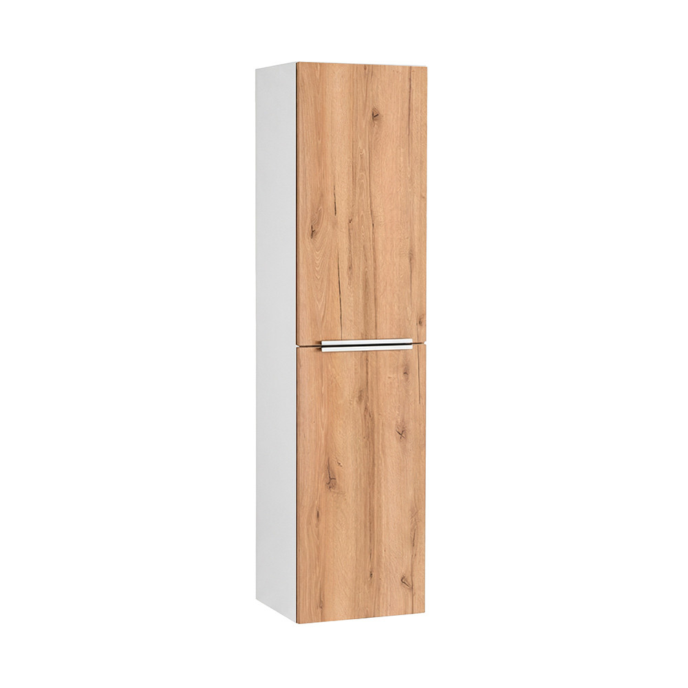 Dulapul lateral suspendat Vario Trim 35cu design suspendat oferă băii un aspect modern și curat, facilitând în același timp curățenia zilnică: podeaua este lăsată liberă dedesubt, ceea ce face ca spațiul să pară mai spațios și mai ordonat. Ușa poate fi montată atât în stânga, cât și în dreapta, ceea ce este deosebit de avantajos în băile mici, unde fiecare centimetru contează.Dulapul este fabricat din panouri de mobilier durabile care rezistă la umiditatea zilnică din baie.Suprafețele sunt ușor de curățat. Profilul mânerului metalic Trim accentuează și mai mult caracterul elegant și modern al mobilierului; acesta oferă confort în utilizare și se îmbină armonios cu aspectul sofisticat al suprafețelor din stejar alb.