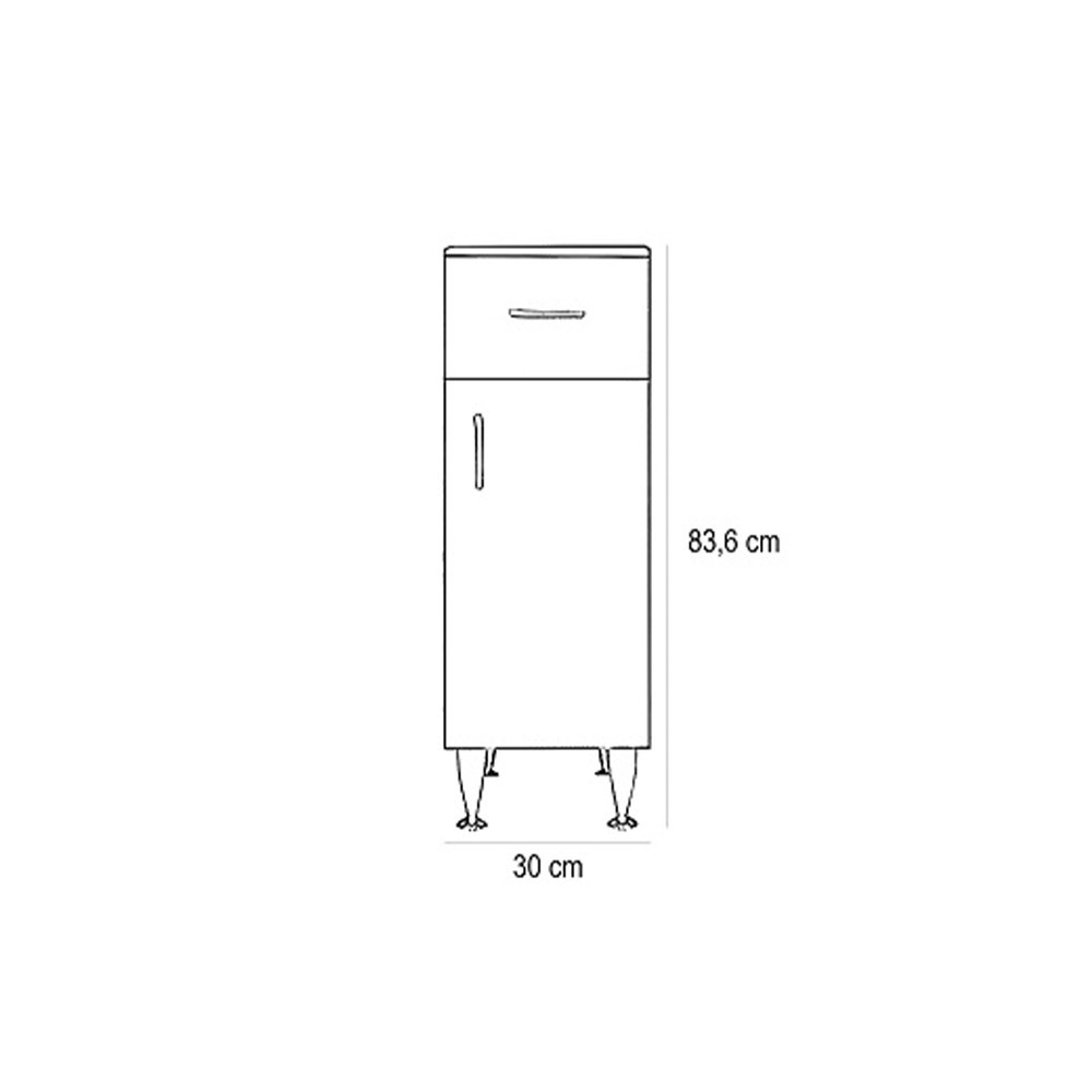Dulap jos Bianca Plus 30 cu 1 ușă, 1 sertar, alb lucios, dreapta