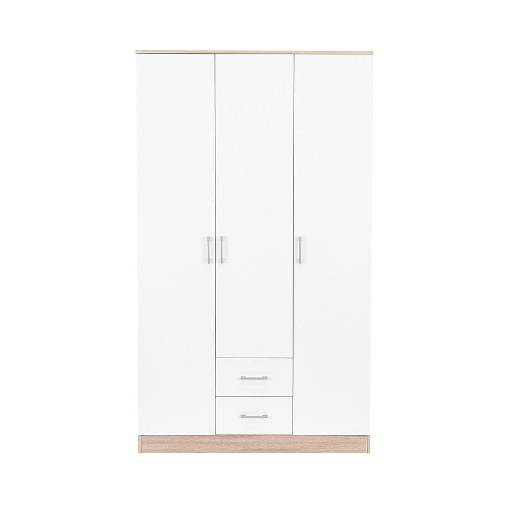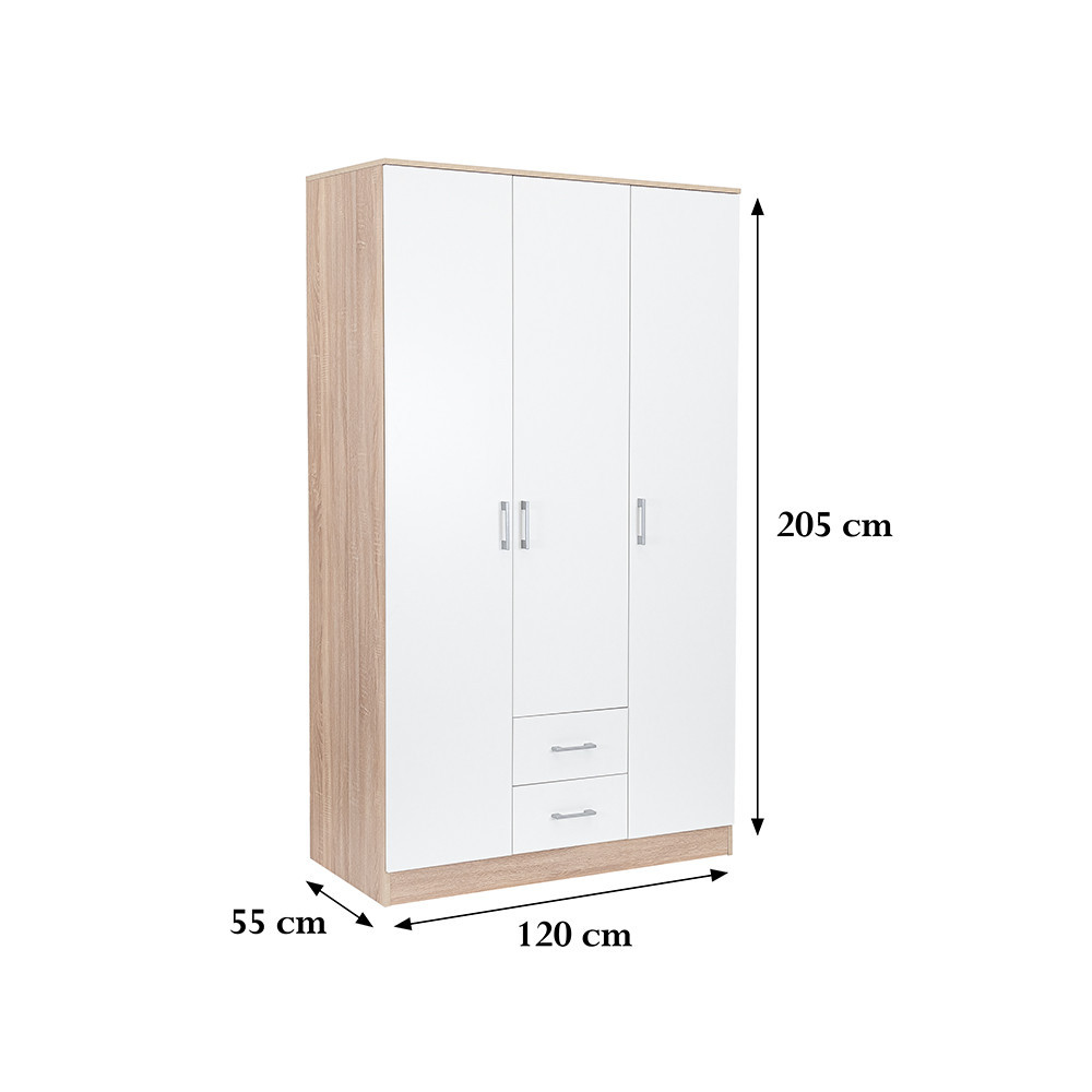 Elegantul față albă și efectul de lemn corp din stejar Sonoma Combinația sa creează o armonie perfectă atât în living, cât și în dormitor. THE 205 cm înălțime, 120 cm lățime și 55 cm adâncime Un dulap este o alegere ideală pentru oricine dorește să își organizeze hainele și accesoriile.