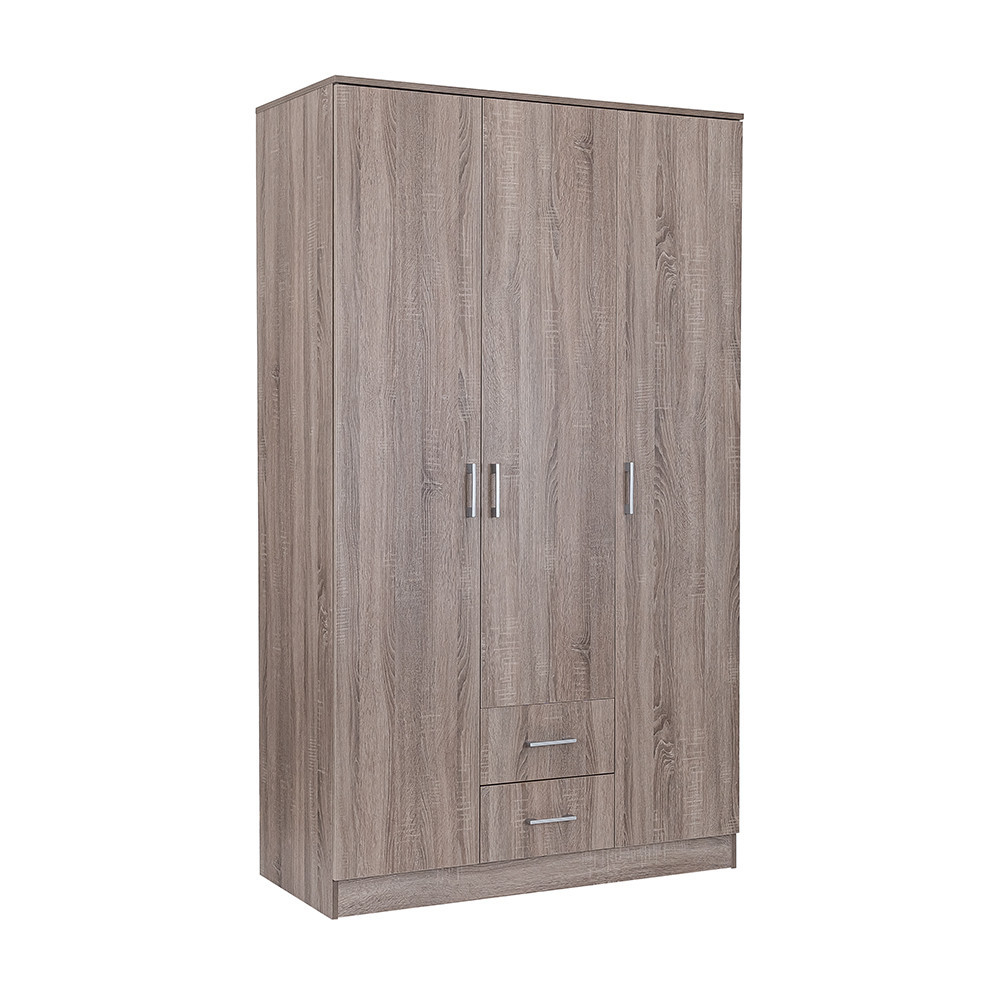 Elegantul fațadă din stejar York și efectul de lemn Corp de stejar York Combinația sa creează o armonie perfectă atât în sufragerie, cât și în dormitor. THE 205 cm înălțime, 120 cm lățime și 55 cm adâncime Un dulap este o alegere ideală pentru oricine dorește să își organizeze hainele și accesoriile.