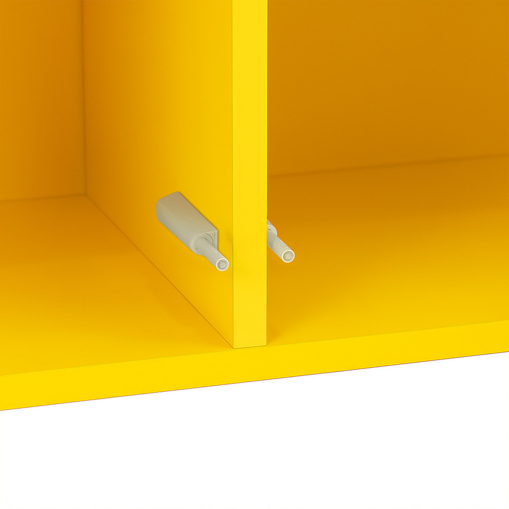 Dulapul de perete Boxie galben cu 2 uși este alegerea ideală pentru designerii de interior conștienți, proprietarii de locuințe mici și toți cei care apreciază depozitarea variabilă și decorativă.