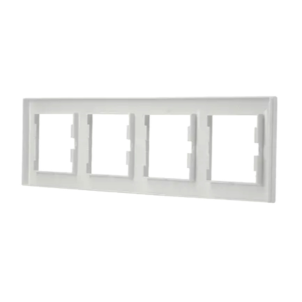 Rama quad Leziter Nova este concepută pentru montarea estetică și stabilă pe perete a patru module (de exemplu, întrerupător sau priză), compatibile cu gama Nova de armături fără ramă. Dispunerea orizontală de 83 × 300 mm cu margini rotunjite și design încastrat oferă un aspect curat, potrivit pentru utilizare numai în medii interioare uscate, fără praf.