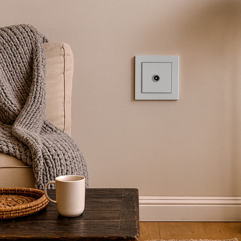 Priza Nova TV permite conectarea fiabilă și estetică a televizoarelor, a unităților interioare și a altor dispozitive potrivite pentru recepția prin antenă. Priza RF coaxială asigură o conexiune stabilă pentru o calitate perfectă a imaginii și a sunetului. Designul său încastrat îi permite să se integreze discret în sistemele de montare pe perete, iar designul său fără ramă creează un aspect modern și curat. Pentru utilizare doar în interior, în încăperi uscate și fără praf, cum ar fi sufragerii, dormitoare sau birouri. Instalarea trebuie să fie efectuată întotdeauna de un electrician calificat.