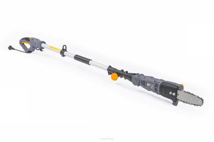 Fierăstrău electric pentru tăierea copacilor cu reglare a înclinării în trei trepte de la POWERMAT PM-EPW-1000 , cu șină de ghidare și lanț de înaltă calitate. Reglarea rapidă și ușoară a lungimii telescopului de la 184 cm la 240 cm și reglarea unghiului capului de tăiere în trei etape fac tunderea copacilor mult mai ușoară. Motorul electric de 1000 W are suficientă putere pentru a tăia crengi groase.