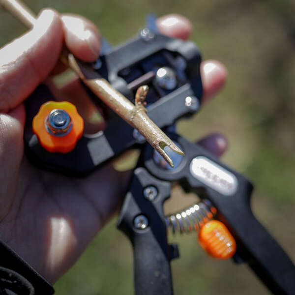 Cu trei lame interschimbabile, unealta de altoire și tăiere Reppex asigură o potrivire perfectă pentru fiecare tăietură, ceea ce este vital pentru o altoire reușită. Fie că este vorba de mere, pere, prune sau struguri - tăietura este rapidă, curată și fără distorsiuni, astfel încât plantele se regenerează mai ușor.