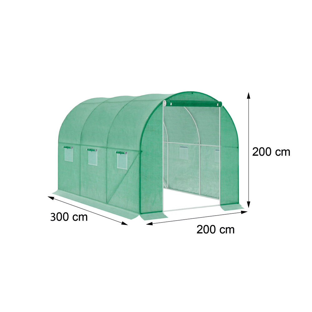 Dimensiunile cortului din folie de 200x200x300 cm oferă spațiu amplu pentru plantele tale. Folia durabilă, rezistentă la raze UV, garantează o durată lungă de viață și protecție împotriva intemperiilor. Produsul vine fără ramă, așa că puteți atașa cu ușurință folia la orice structură compatibilă sau ramă existentă. Tunelul modern din folie are o ușă rulantă, ceea ce crește semnificativ confortul de utilizare. În plus, cele 6 ferestre din plasă asigură o circulație adecvată a aerului, protejând în același timp eficient împotriva insectelor nedorite. Cortul din folie este ușor de instalat și întreținut, fiind o alegere ideală pentru utilizare sezonieră și protejând eficient plantele de lumina excesivă a soarelui, ploaie și vânt.