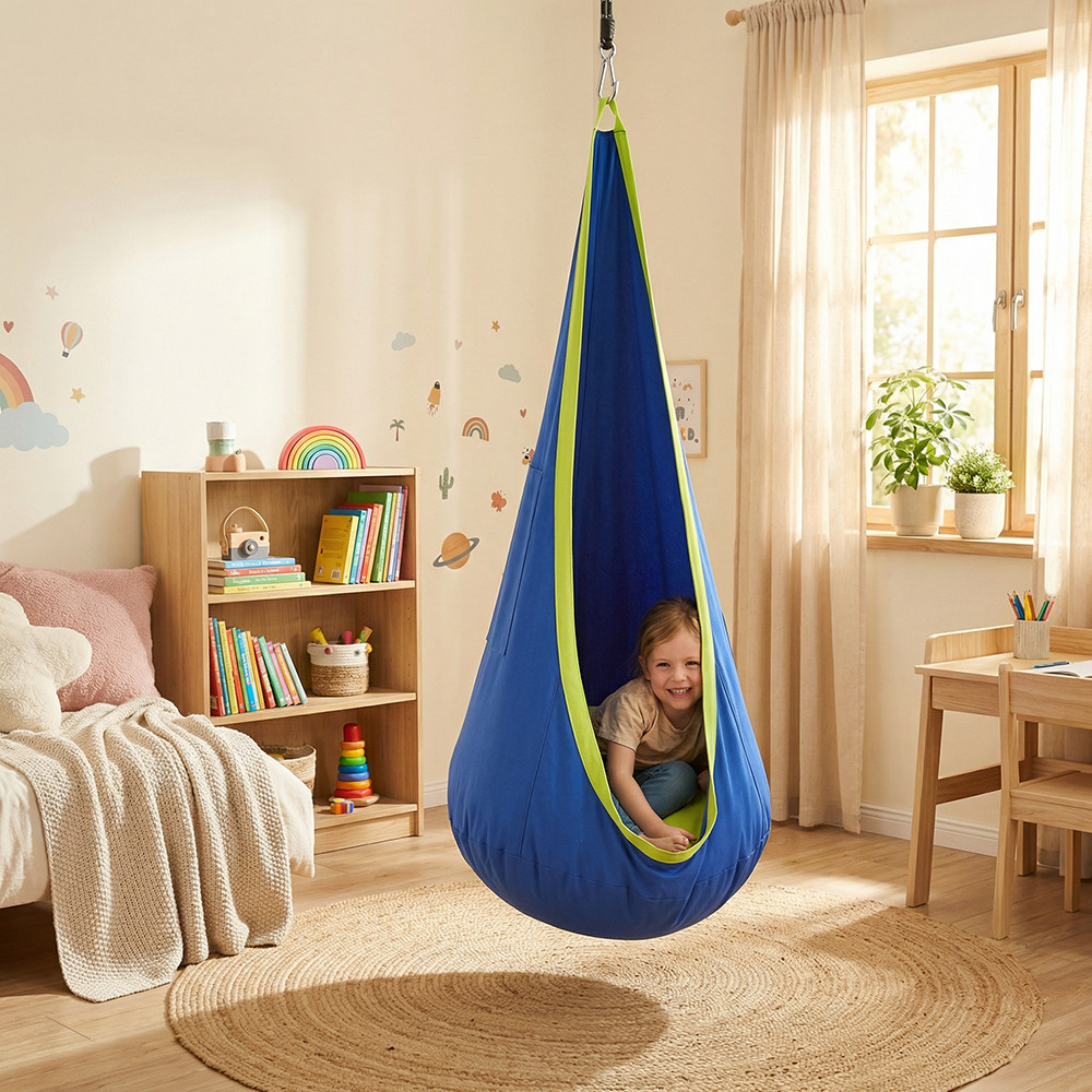Forma închisă, de lacrimă, nu este doar plăcută din punct de vedere estetic, ci creează și o senzație de cub. Materialul învăluitor ajută la excluderea distragerilor externe, ceea ce îl face o alegere ideală pentru crearea unei zone de relaxare în camera de zi, camera copiilor sau terasa acoperită. Punctul de suspensie superior permite montarea pe tavan sau pe structura de susținere, făcând scaunul hamac stabil și sigur.