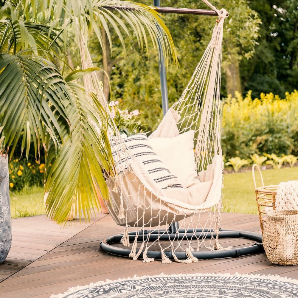 Stilul său boem caracteristic se potrivește perfect în multe interioare. Adaugă caracter oricărei grădini. Este fabricat din materiale durabile , iar suportul din lemn asigură stabilitatea structurii. Șezutul este fabricat din bumbac , care este plăcut la atingere.