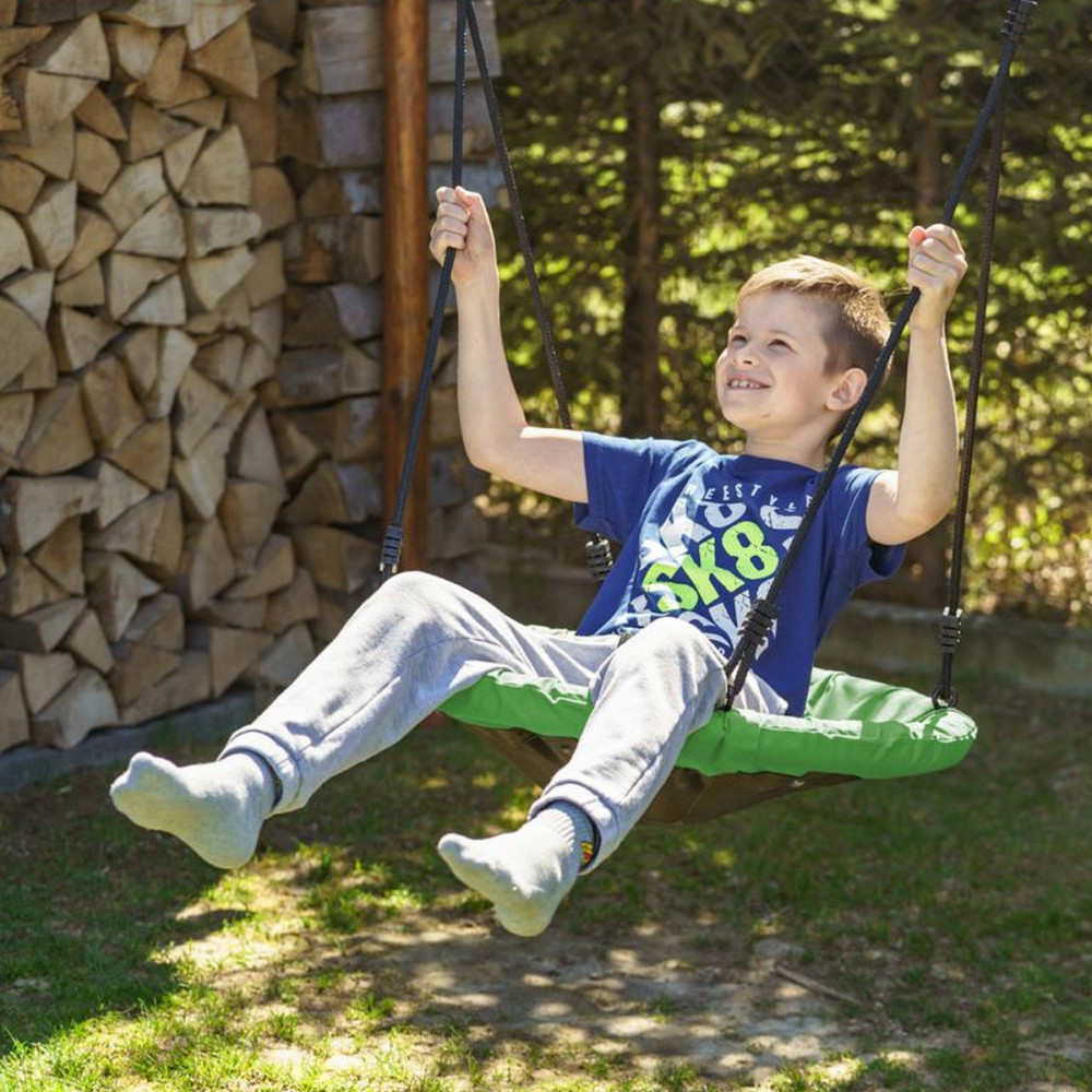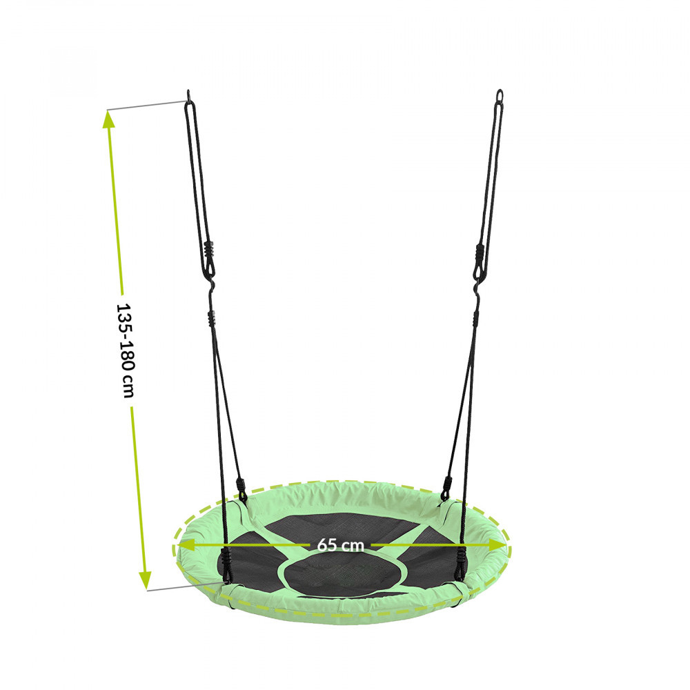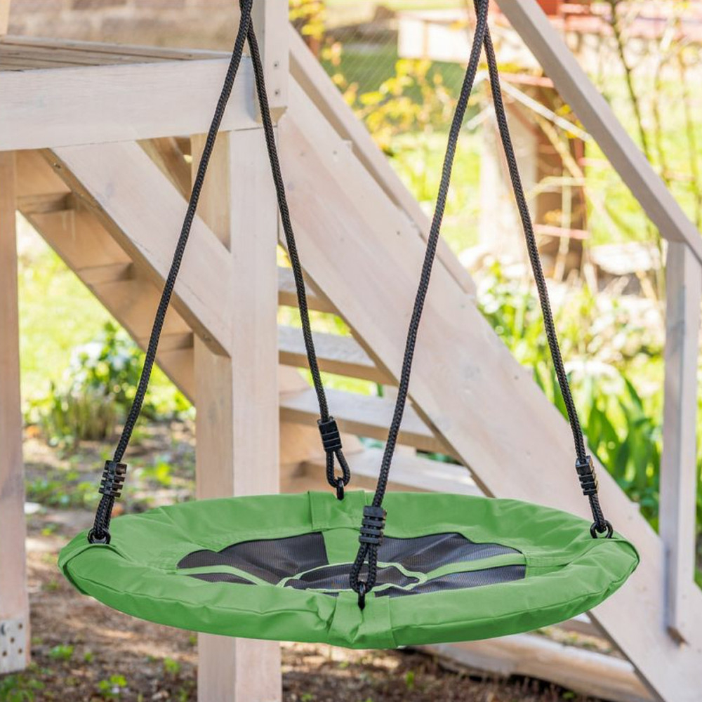 Un leagăn suspendat este o atracție pentru copii care îi încurajează să se joace în siguranță în aer liber. Leagănul verde pentru copii funcționează atât ca leagăn de grădină, cât și ca leagăn de cameră. Diametrul scaunului permite momente de bucurie fără griji.
