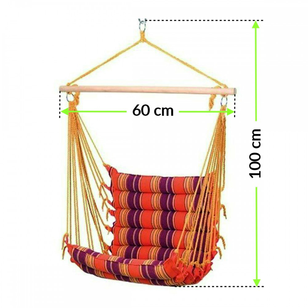 Un hamac este o soluție care combină avantajele scaunelor suspendate, hamacelor, șezlongurilor și leagănelor. Șezutul din bumbac, grinda din lemn și fixările solide garantează funcționalitate, durabilitate și confort în timpul utilizării. Materialul scaunului este, de asemenea, căptușit, ceea ce influențează pozitiv confortul în utilizare.