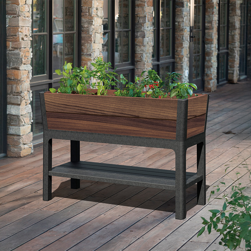 Jardiniera Keter Deco Elevated folosește inovația Keter, tehnologia DecoCoat, care nu numai că oferă o culoare estetică a nucului și o suprafață cu aspect de lemn, dar și o rezistență extremă la intemperii. Nu se decolorează la soare, nu crăpă la ploaie și nu ruginește - așa că îl poți folosi atât în interior, cât și în exterior, chiar și iarna.