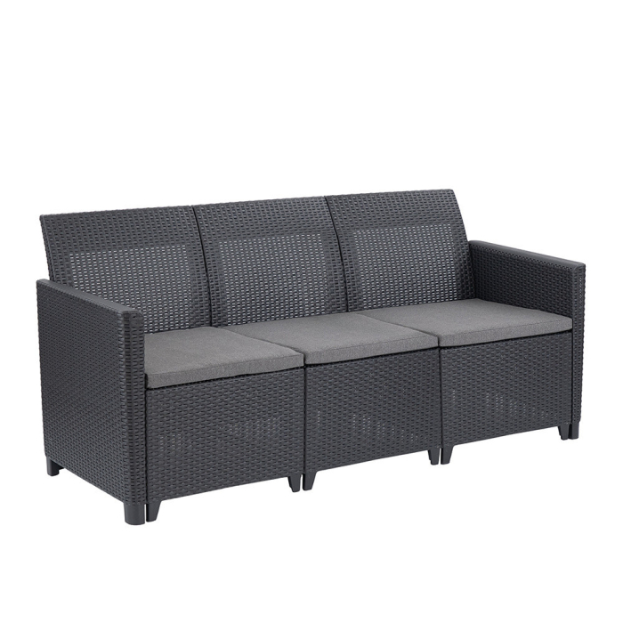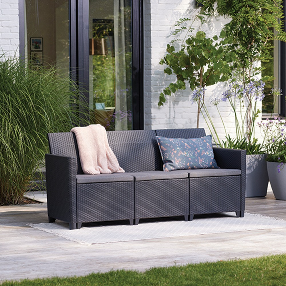 Canapeaua de grădină, disponibilă în culoarea grafit, se mândrește cu o structură ușoară, dar durabilă. Pe lângă toate acestea, fiecare element este extrem de ușor de curățat, astfel încât aspectul general poate fi impecabil în cel mai scurt timp.