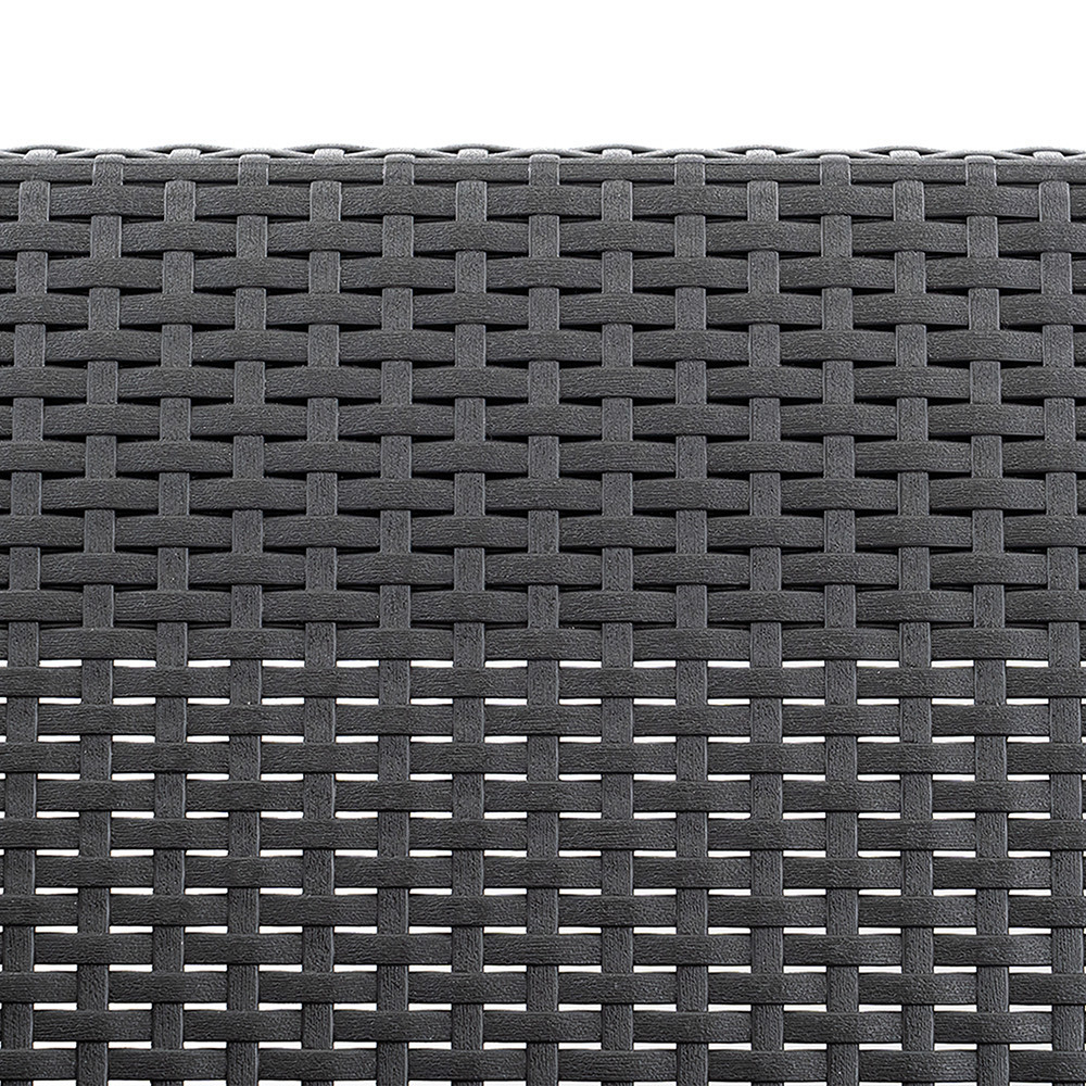 Canapeaua de grădină din ratan de culoarea grafit măsoară 65 x 163 x 74 cm. Acesta este un produs de înaltă calitate, fabricat din plastic turnat prin injecție de cea mai înaltă calitate.