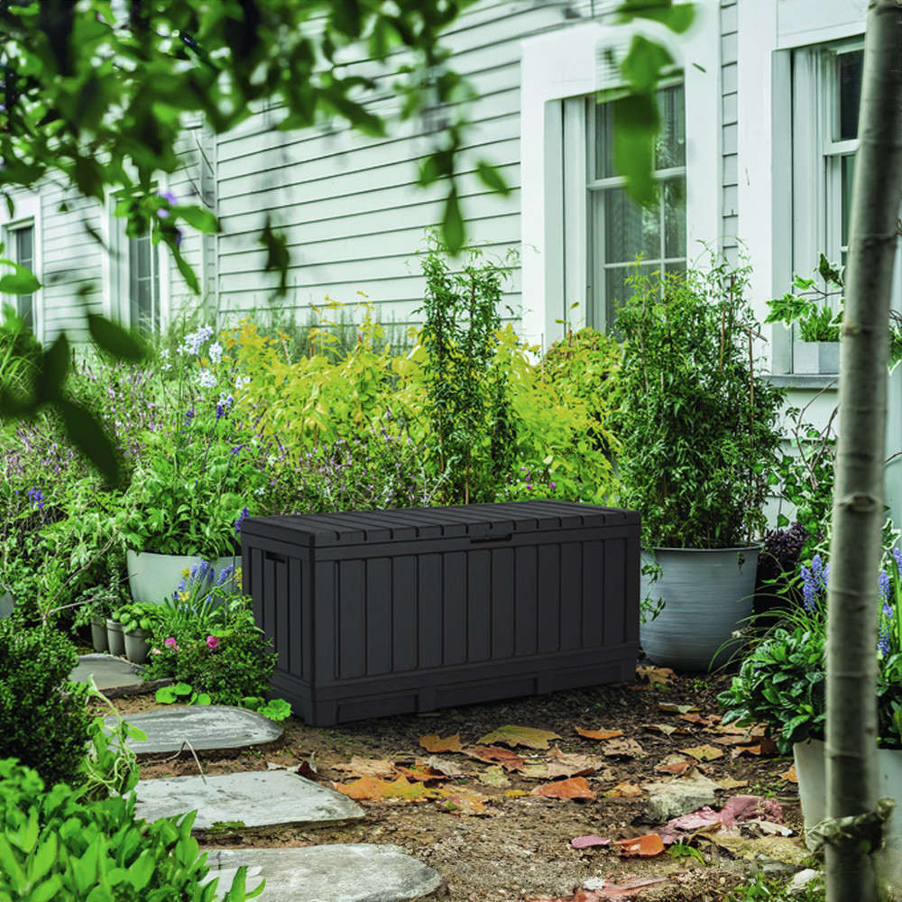 Lada de depozitare Kentwood este fabricată din rășină de cea mai înaltă calitate, care oferă o protecție eficientă pentru obiectele depozitate împotriva umezelii, murdăriei și radiațiilor UV. Designul de culoare antracit nu este doar modern și elegant, ci își păstrează și culoarea timp de mulți ani și este rezistent la influențele mediului extern.