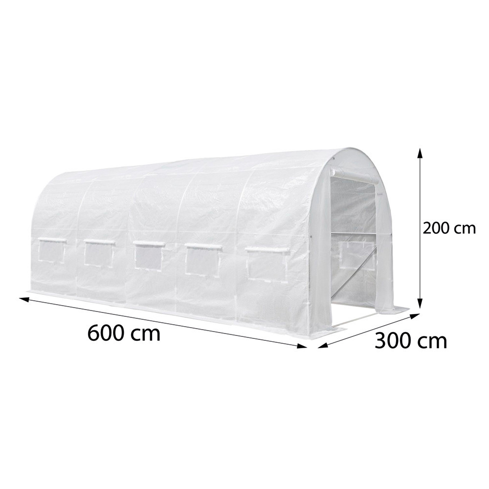 Cortul din folie oferă spațiu amplu pentru plantele tale datorită dimensiunilor sale de 200x300x600 cm . Folia durabilă, rezistentă la raze UV, garantează o durată lungă de viață și protecție împotriva intemperiilor. Produsul vine fără ramă, așa că puteți atașa cu ușurință folia la orice structură compatibilă sau ramă existentă. Tunelul modern din folie are o ușă rulantă, ceea ce crește semnificativ confortul de utilizare. În plus, cele 12 ferestre din plasă asigură o circulație adecvată a aerului, protejând în același timp eficient împotriva insectelor nedorite. Cortul din folie este ușor de instalat și întreținut, fiind o alegere ideală pentru utilizare sezonieră și protejând eficient plantele de lumina excesivă a soarelui, ploaie și vânt.