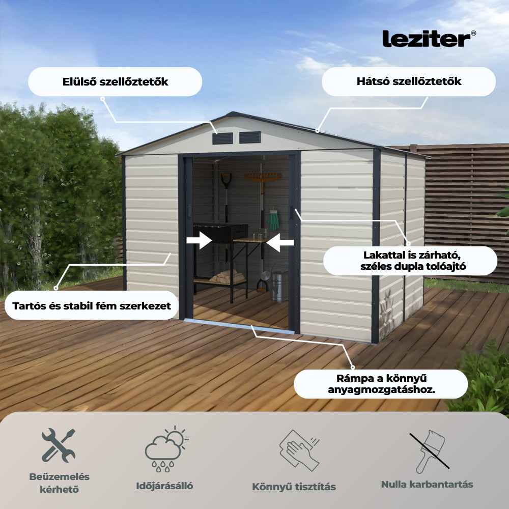 - Dimensiuni: 277 x 195 x 200 cm - Casa compactă de depozitare este o alegere ideală pentru oricine dorește să depoziteze unelte și utilaje de grădinărit mai mici într-un singur loc.