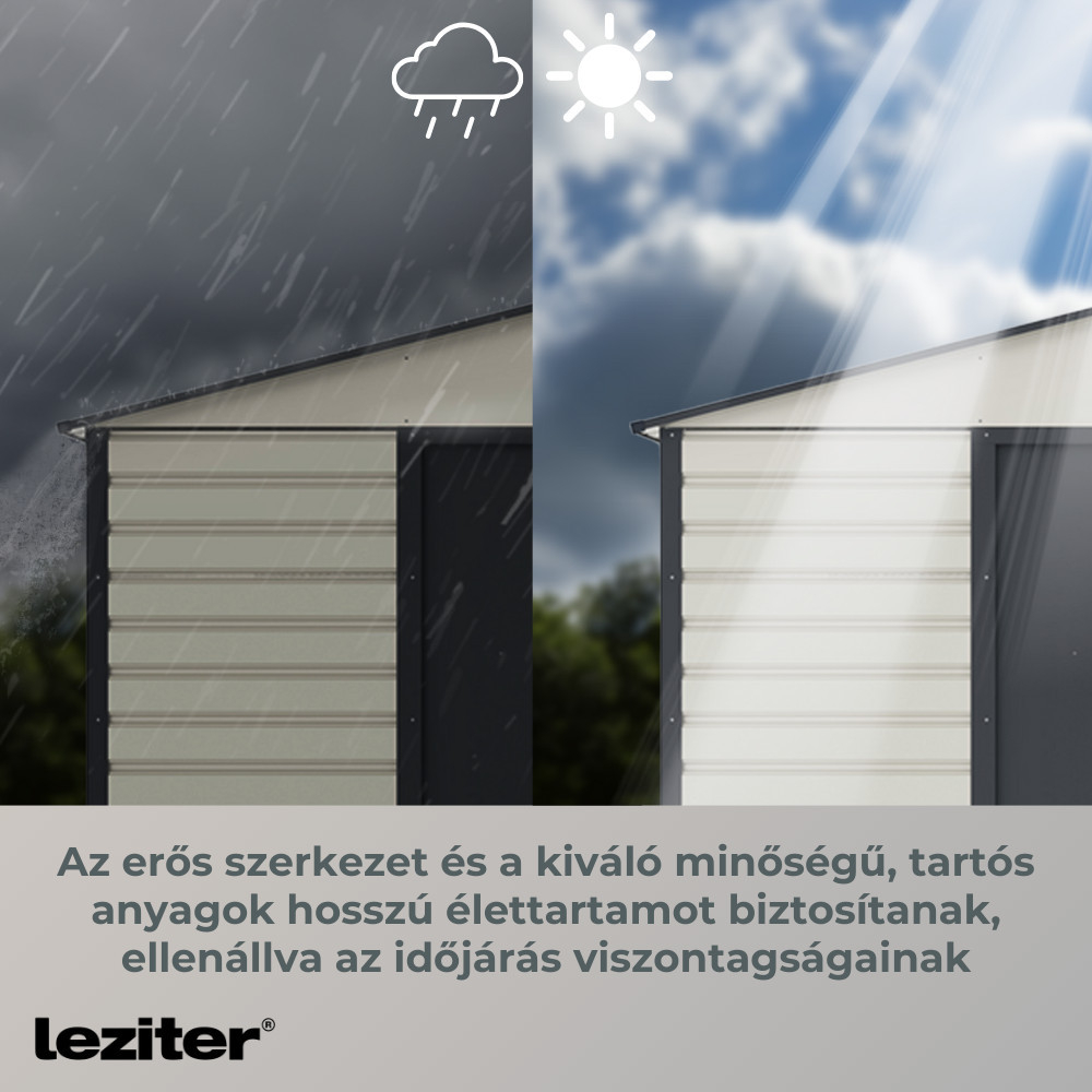 - Design robust: Structura puternică și materialele durabile de înaltă calitate asigură o durată lungă de viață, rezistând la intemperii. Depozitul de scule Kansas este fabricat din panouri de oțel galvanizat la cald cu grosimea de 0,25 mm și cadru din oțel galvanizat la cald cu grosimea de 0,5-0,8 mm, ceea ce garantează durabilitatea. Stâlpii de perete armați cu metal adaugă rezistență și stabilitate suplimentară structurii. Datorită designului său atemporal și durabil, această unitate de depozitare vă va servi dumneavoastră și grădinii dumneavoastră mulți ani.