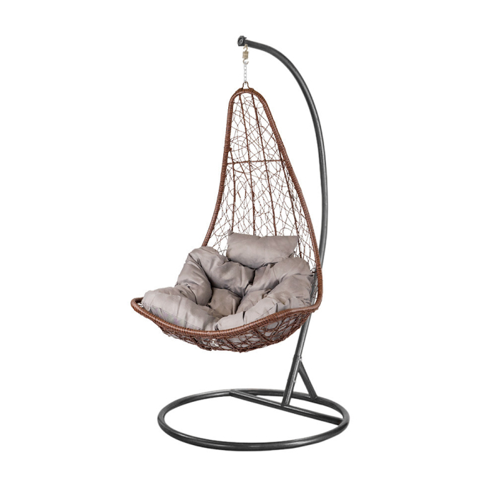 Coșul este fabricat din poliratan împletit dens, care, pe lângă beneficiile sale estetice, este și rezistent la intemperii. Materialul de rattan de culoare maro este rezistent la condițiile meteorologice extreme, astfel încât hamacul își va păstra frumusețea în timp.