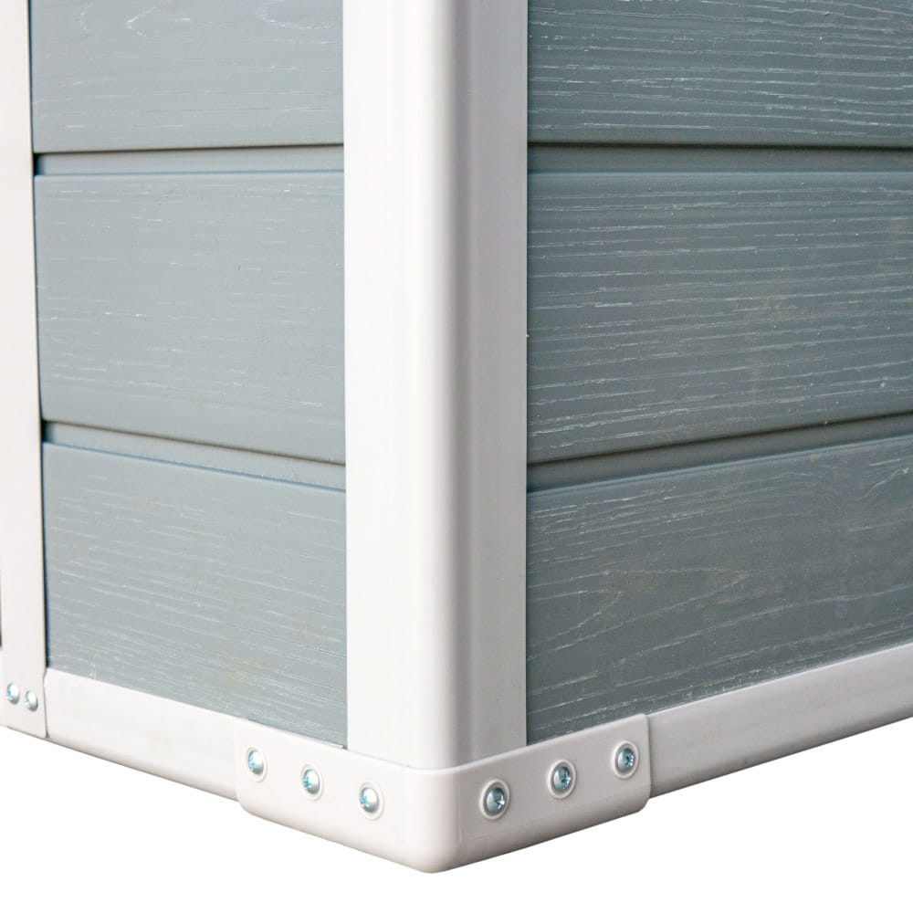 Carcasa pentru unelte are o construcție durabilă din polipropilenă, perfectă pentru orice grădină. Pereții dubli solizi oferă o izolație optimă și protecție împotriva deteriorării mecanice. Rama din oțel galvanizat cu grosimea de 0,6 mm crește stabilitatea și rezistența la coroziune, făcând casa durabilă și fiabilă.
