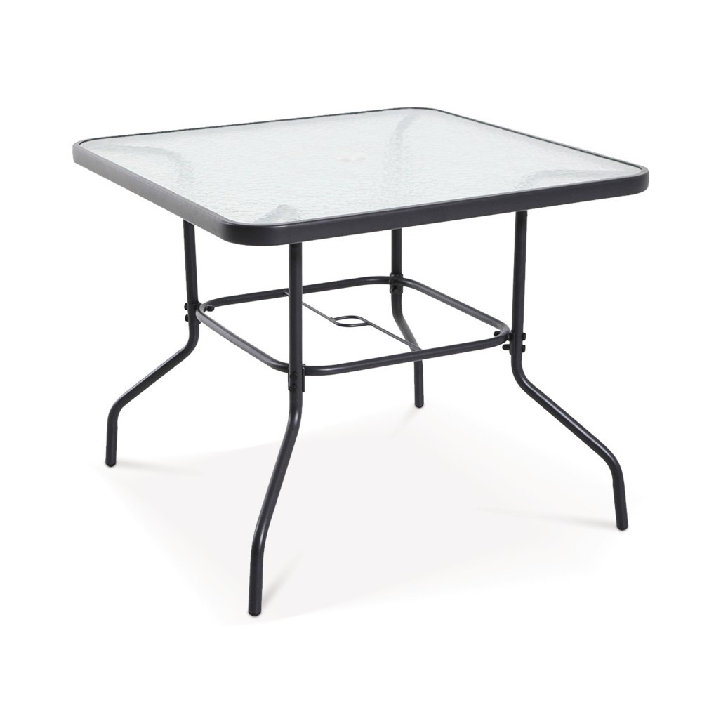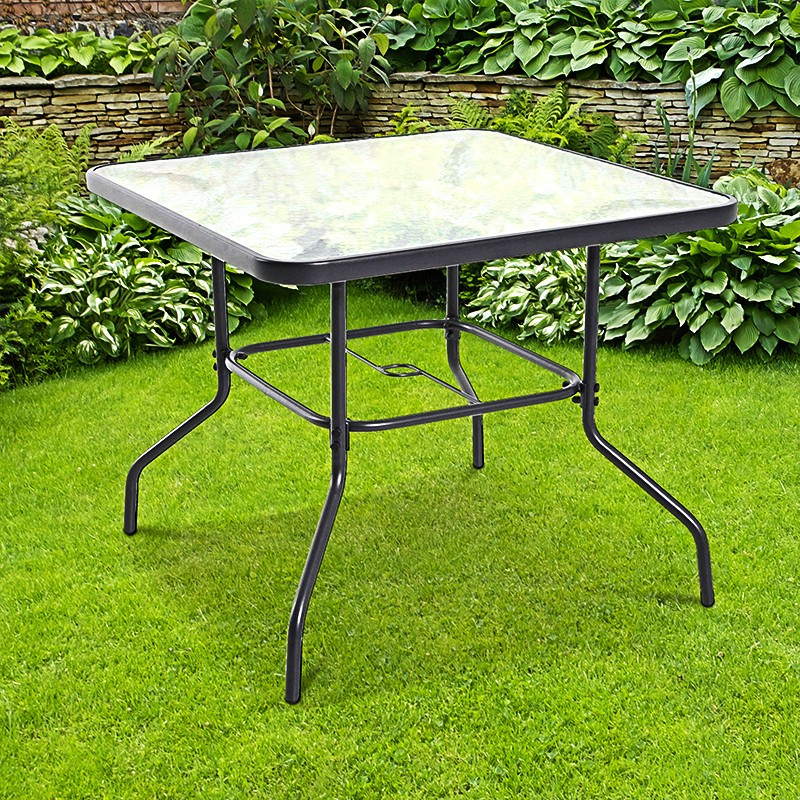 Masă de grădină din oțel cu blat pătrat din sticlă