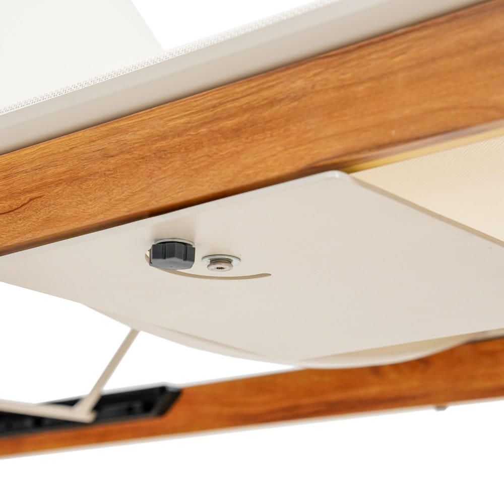 Cadrul șezlongului de grădină este fabricat din aluminiu acoperit cu pulbere, ceea ce garantează rezistența sa la elemente, inclusiv la umiditate și radiații UV. Datorită acestui fapt, mobilierul este excepțional de durabil, rezistent la coroziune și nu își va pierde aspectul estetic în timp.