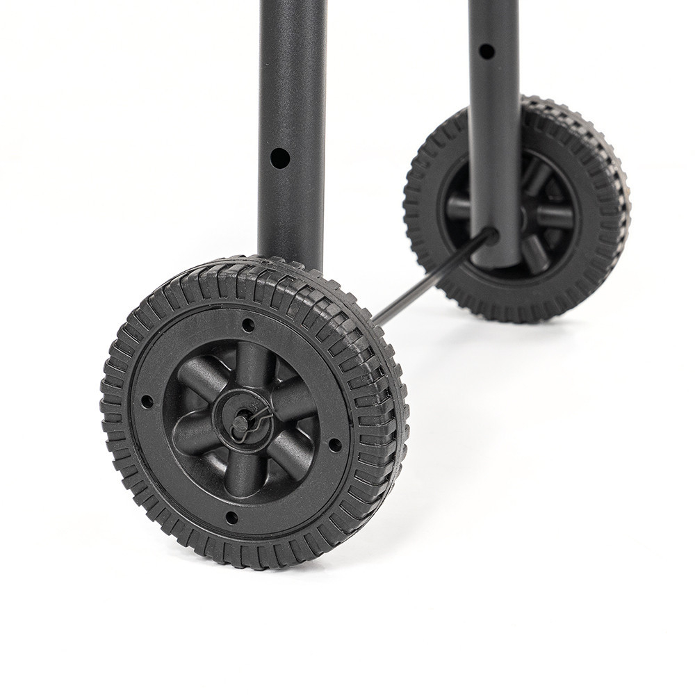 Suprafața de gătit spațioasă vă permite să preparați porții mai mari simultan, fiind ideală pentru reuniunile de familie și cu prietenii. Construcția solidă din oțel garantează durabilitate, în timp ce roțile facilitează deplasarea în grădină sau pe terasă.