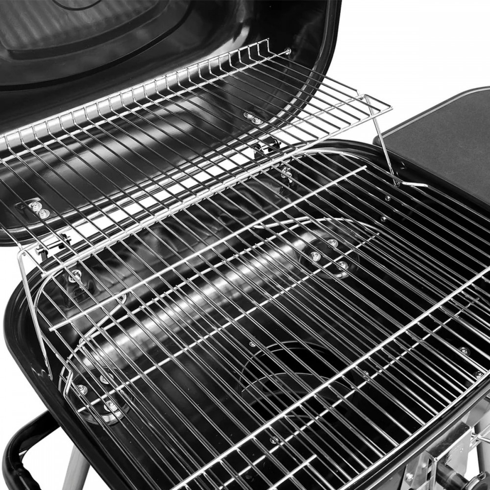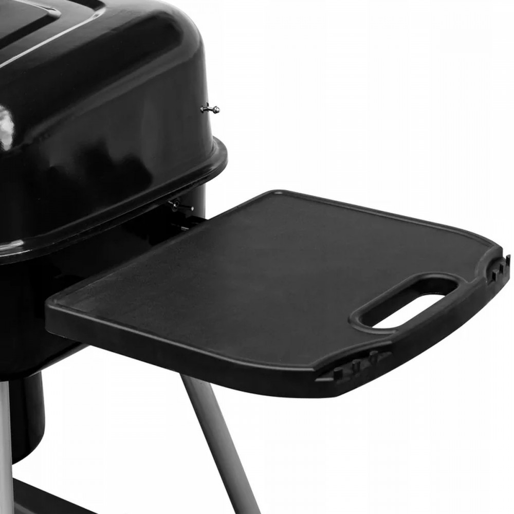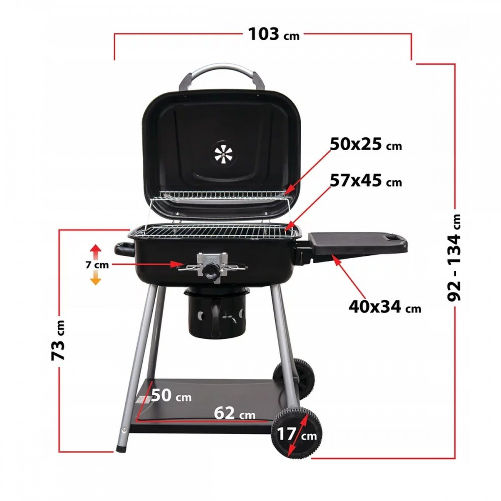 Grătarul cu cărbune este capabil să regleze ușor înălțimea și elementul de încălzire, ceea ce vă permite să controlați prepararea mâncărurilor și să le gătiți perfect. Un avantaj funcțional este raftul lateral și un raft inferior suplimentar, care facilitează grătarul și depozitează accesorii practice. Capacul de ventilație reglabil vă permite să reglați temperatura.