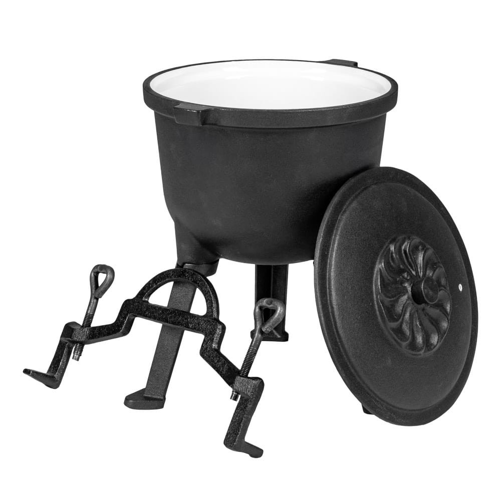 Perfect pentru gătitul pe foc, cazanul din fontă vă permite să preparați o gamă largă de mâncăruri, de la supe la tocănițe și gulaș. Fonta distribuie uniform căldura, astfel încât alimentele se încălzesc uniform, contribuind la aroma lor unică. În plus, aceasta nu reacționează cu alimentele, permițându-vă să păstrați aroma naturală a mâncării.