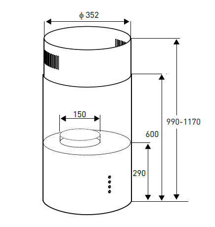 • Înălțime totală cu două coșuri de fum 119,5 cm
