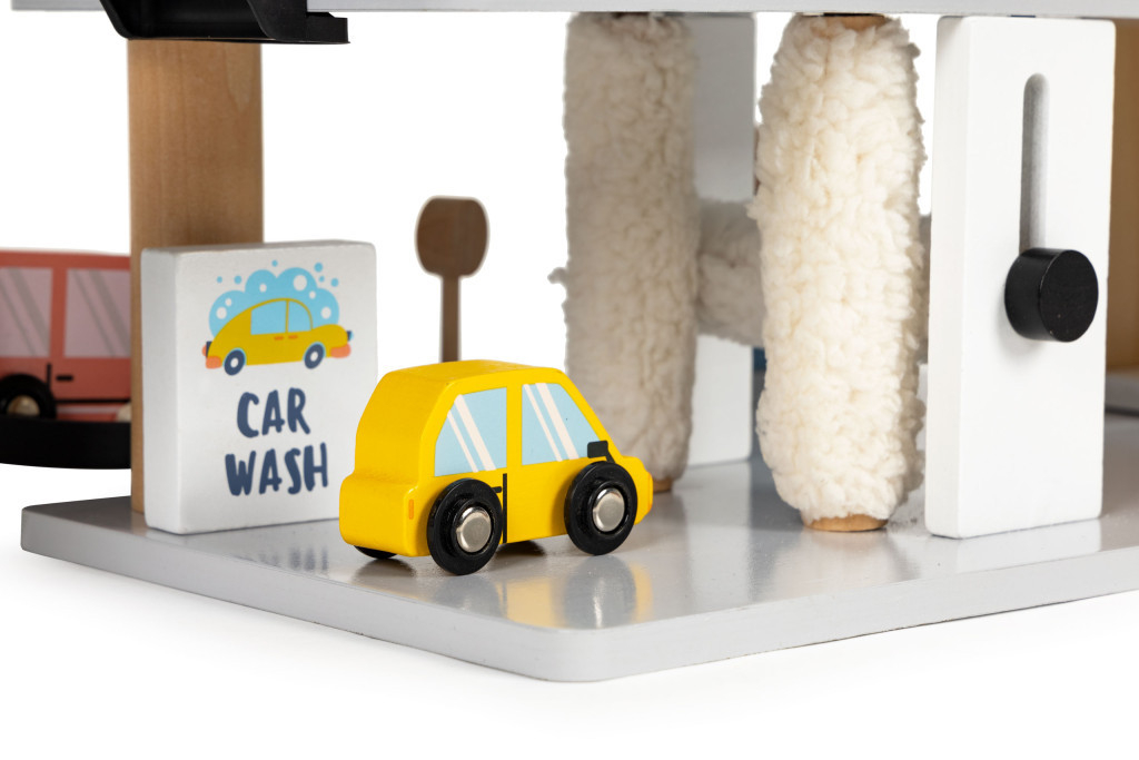 Garajul din lemn este o jucărie complexă concepută pentru distracție și învățare pentru cei mici. oferă o mulțime de oportunități de joacă și explorare, învățând în același timp elementele de bază ale regulilor de circulație și sporind imaginația.
