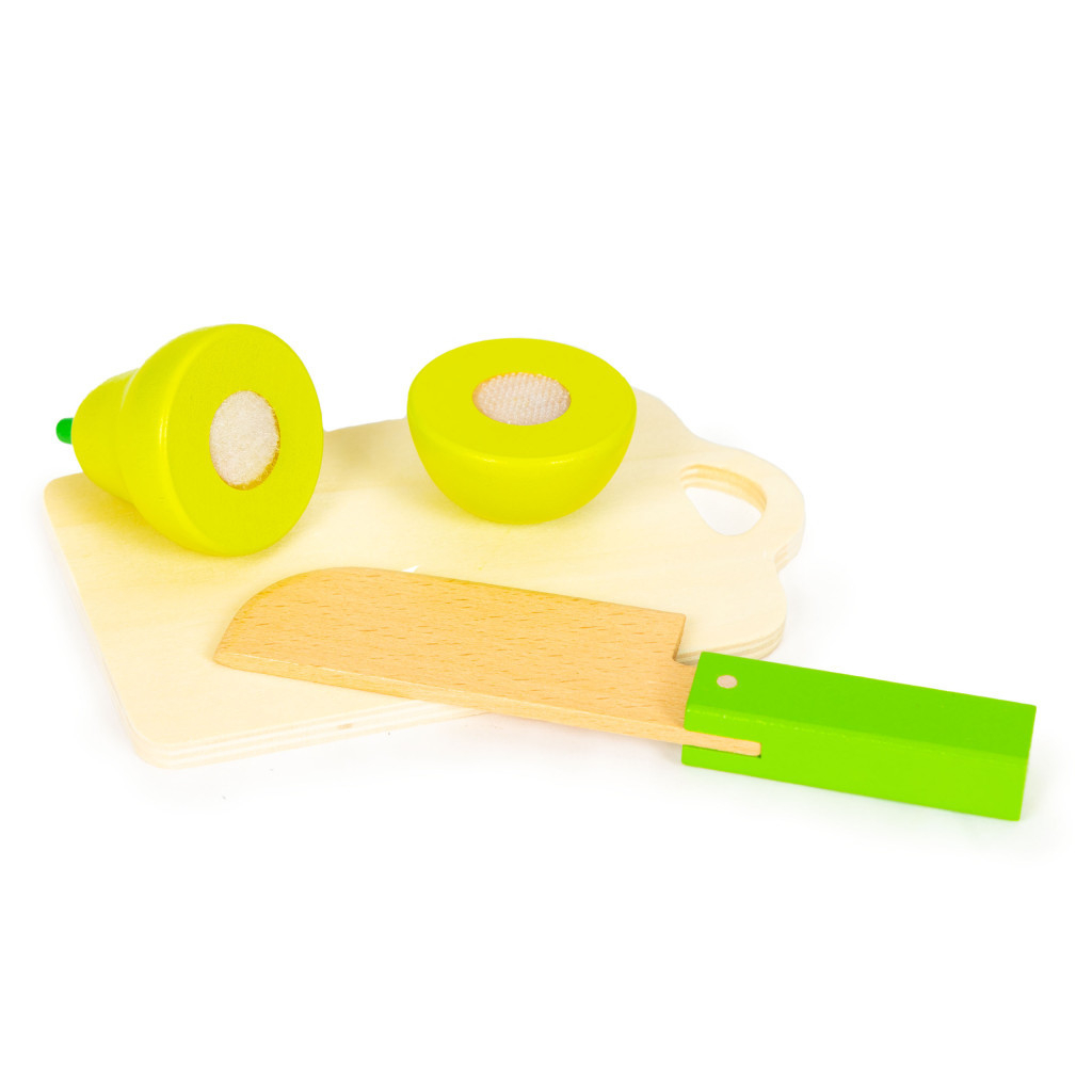 Cea mai interesantă caracteristică a acestui set este că cuțitul din lemn poate fi folosit pentru a tăia legume și fructe.setul de jucării constă dintr-o jumătate conectată prin Velcro, care oferă o ușoară rezistență la tăiere și face un sunet ca și cum ar tăia fructe adevărate . Acestea îi ajută pe copii să-și dezvolteabilitățile motorii și să învețe abilități de bază, cum ar fi utilizarea unui cuțit.