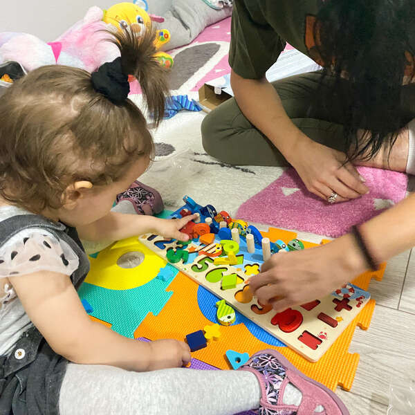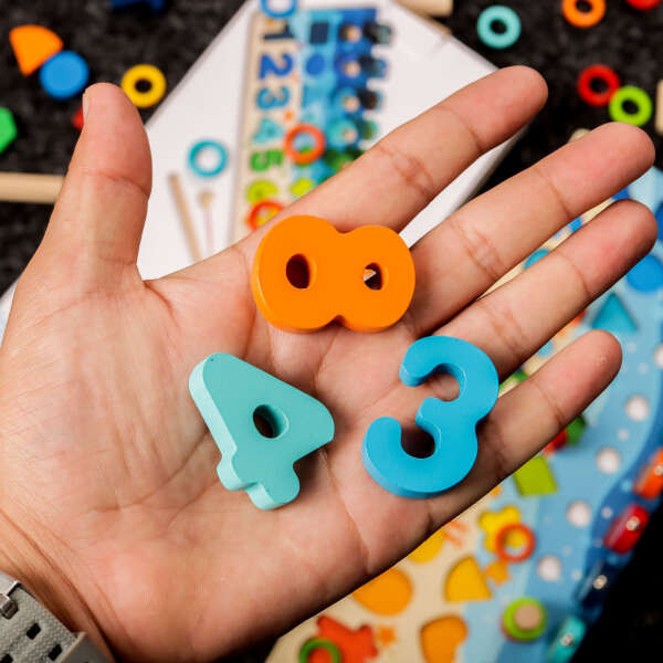 - Conținut: jucărie din mai multe părți cu forme și numere colorate diferit