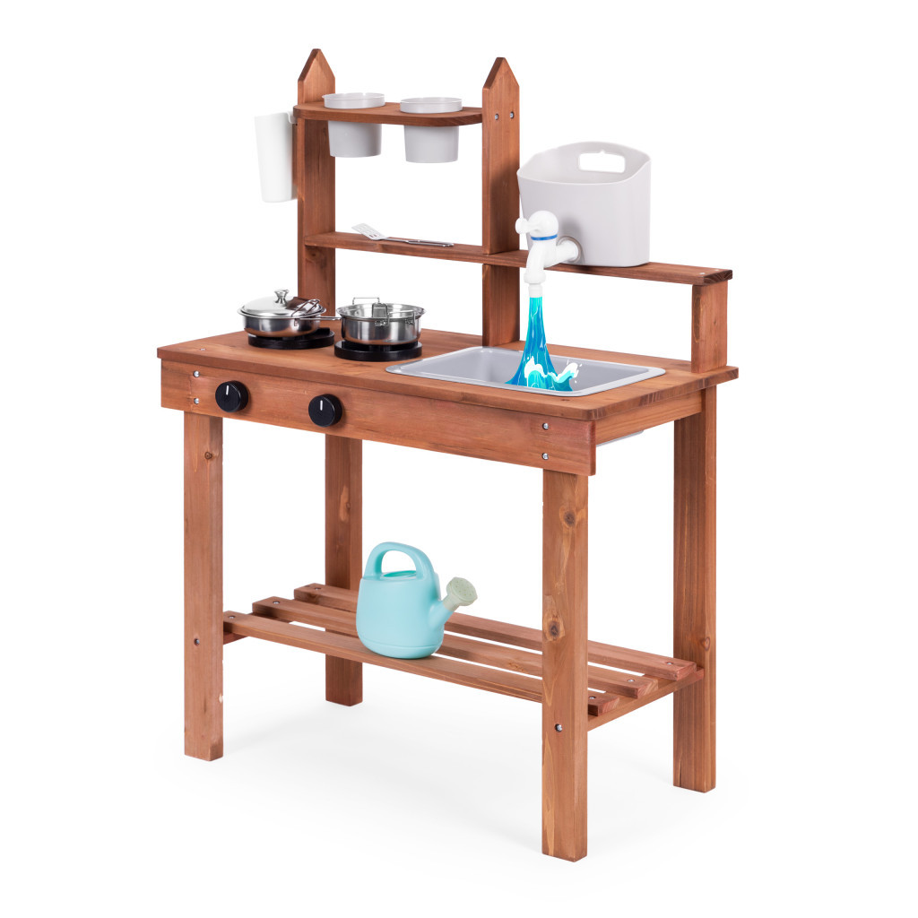 Combinația dintre prepararea alimentelor și joaca în grădină creează un joc unic - o bucătărie de noroi. Datorită construcției sale speciale și a materialelor bine alese (lemn de pin), acest model de bucătărie este potrivit pentru joacă nu numai în camera copiilor, ci și în grădină sau pe terasă. Datorită acestui lucru, copiii pot pregăti diferite feluri de mâncare din nisip, noroi, pietricele și orice altceva pot găsi în zonă, această formă de joc va face rapid bucătăria de noroi o jucărie preferată.