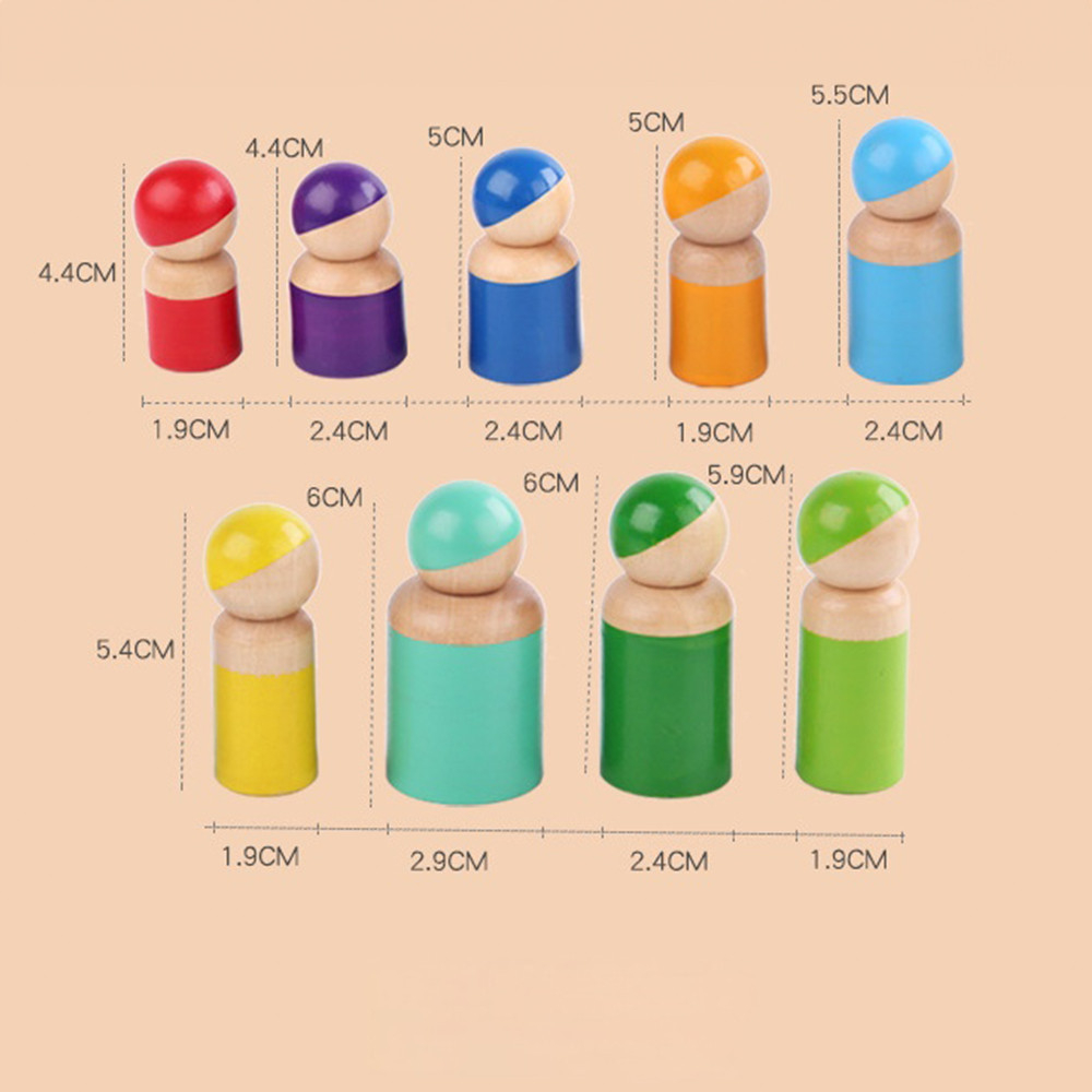 - Dezvoltați abilitățile motorii fine: Baza din set are găuri de diferite dimensiuni, iar marionetele au, de asemenea, înălțimi și dimensiuni diferite. Sarcina este de a plasa piesa corectă în gaura corectă, astfel încât vârfurile fiecărei piese să fie aliniate.
