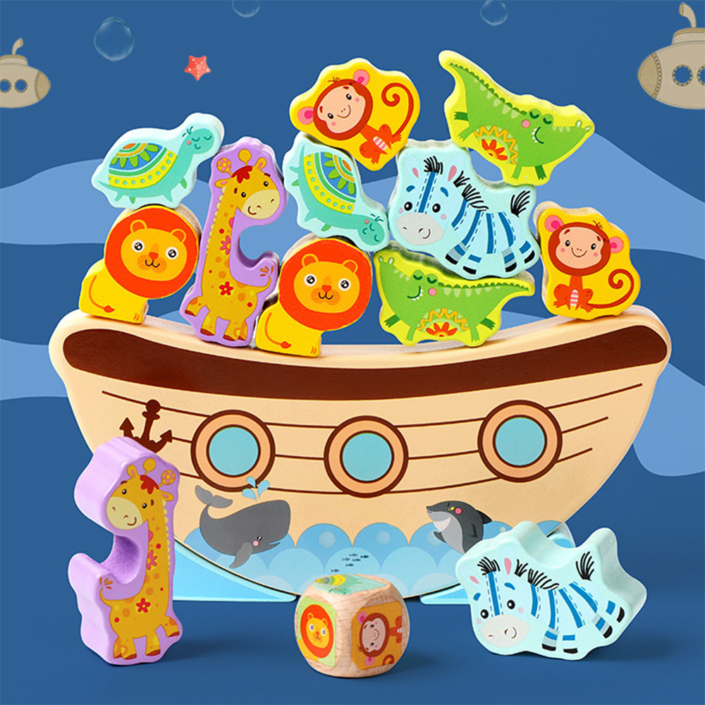 Leziter Jucărie din lemn pentru dezvoltare și echilibrare, arcă cu animale