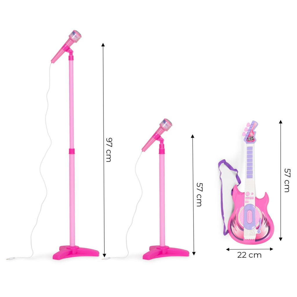 Suportulpentru microfon este un accesoriu care le permite micilor artiști să se exprime vocal. Suportul este reglabil pe înălțime, astfel încât poate fi adaptat la înălțimea oricărui mic muzician. Microfonul este ușor și ușor de utilizat,permițând copiilor să experimenteze momentul real pe scenă.